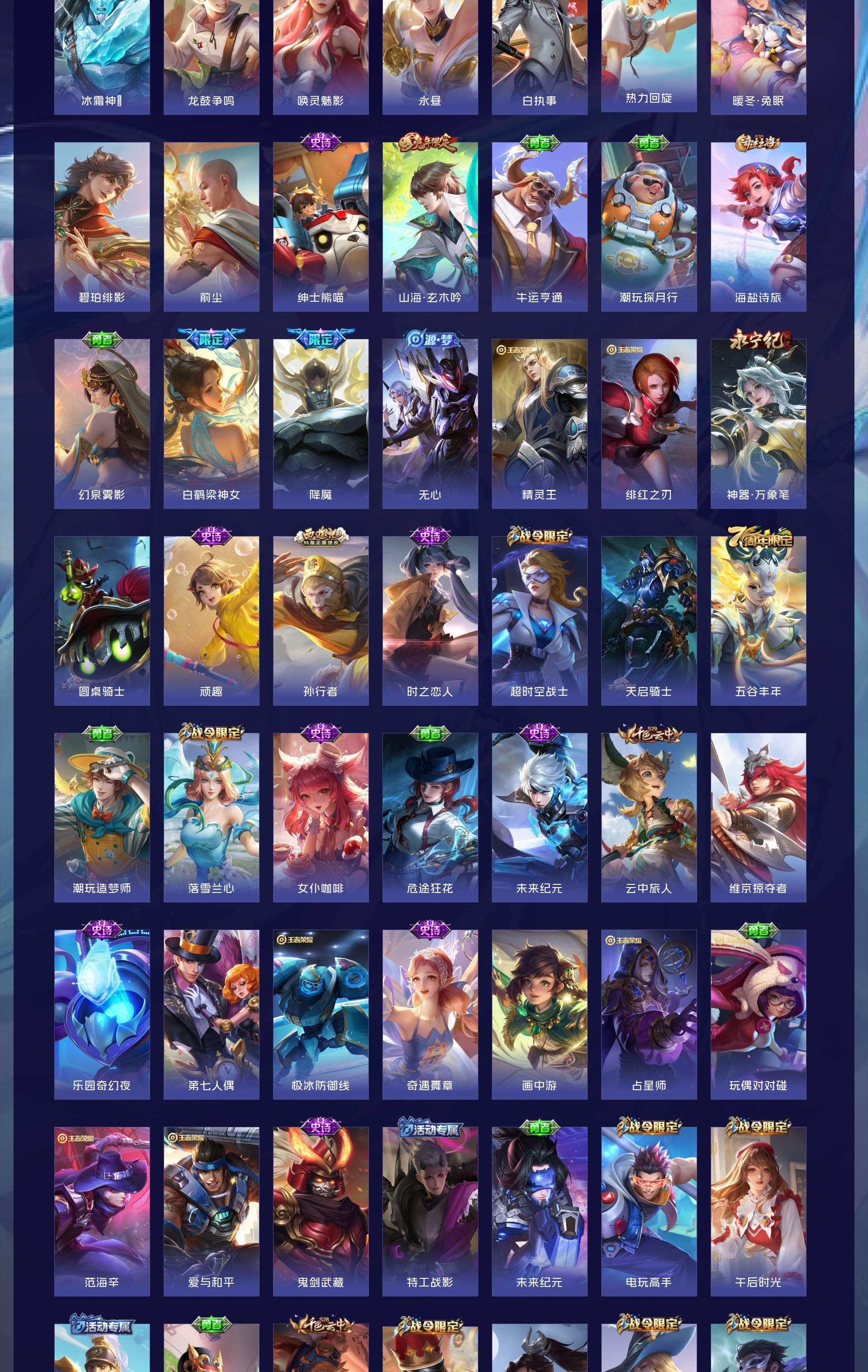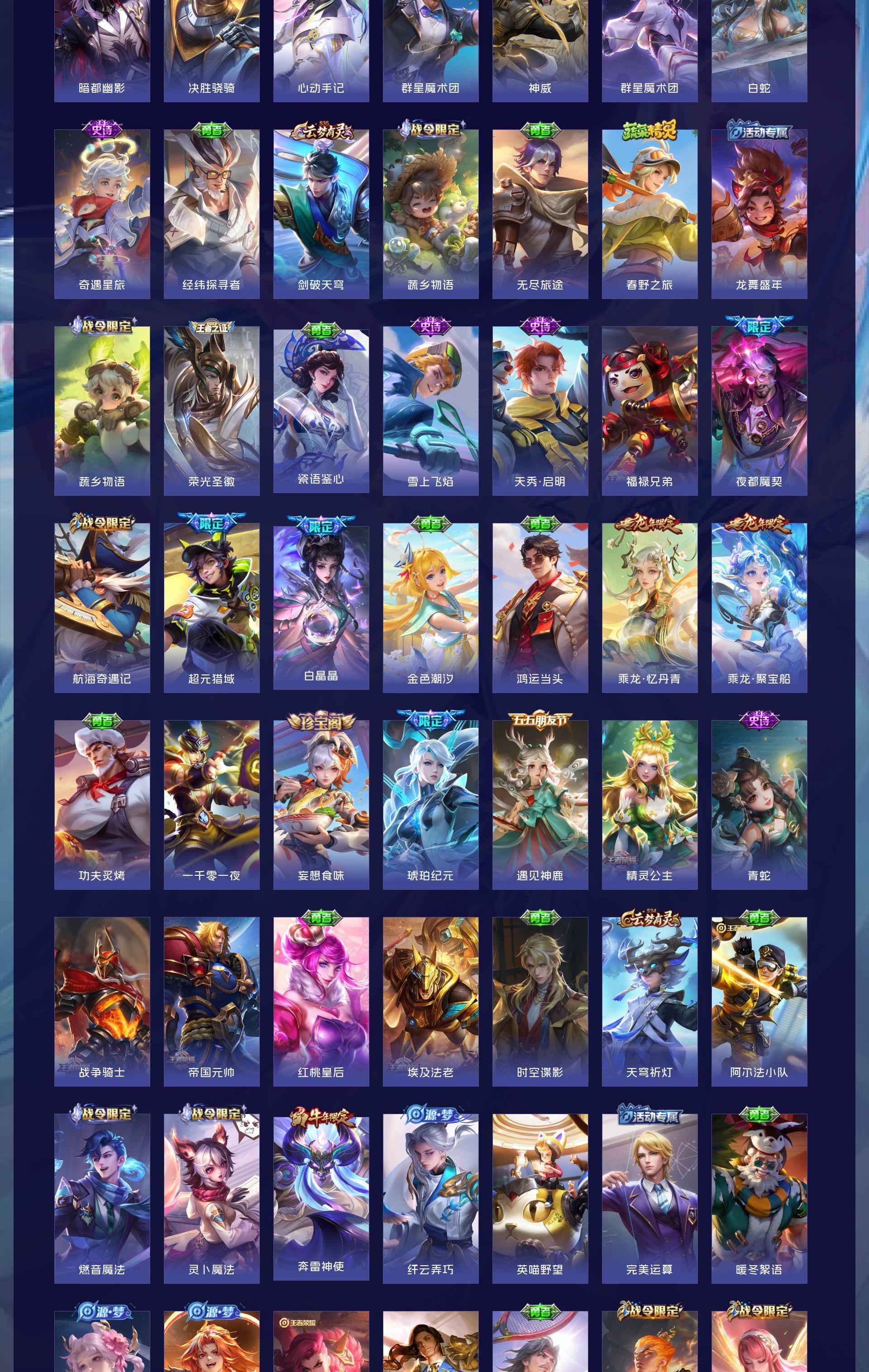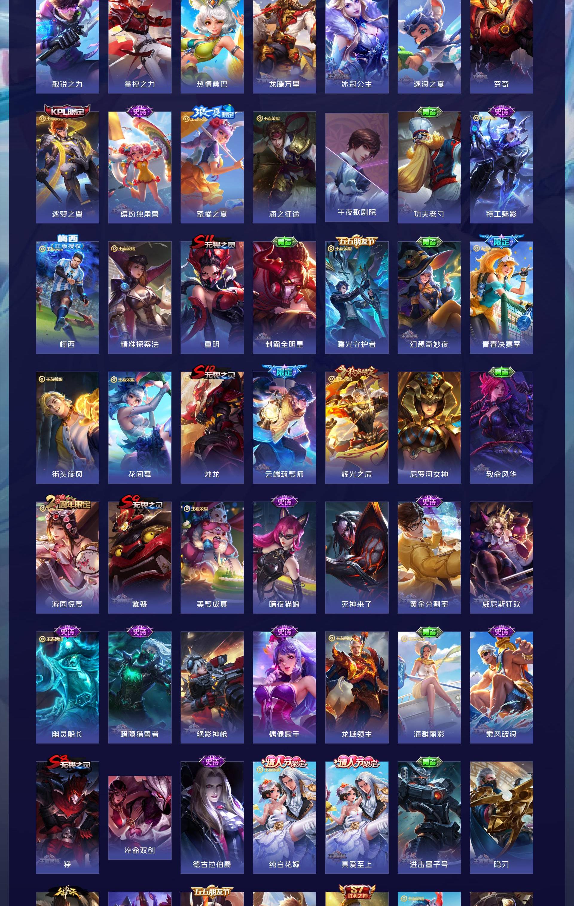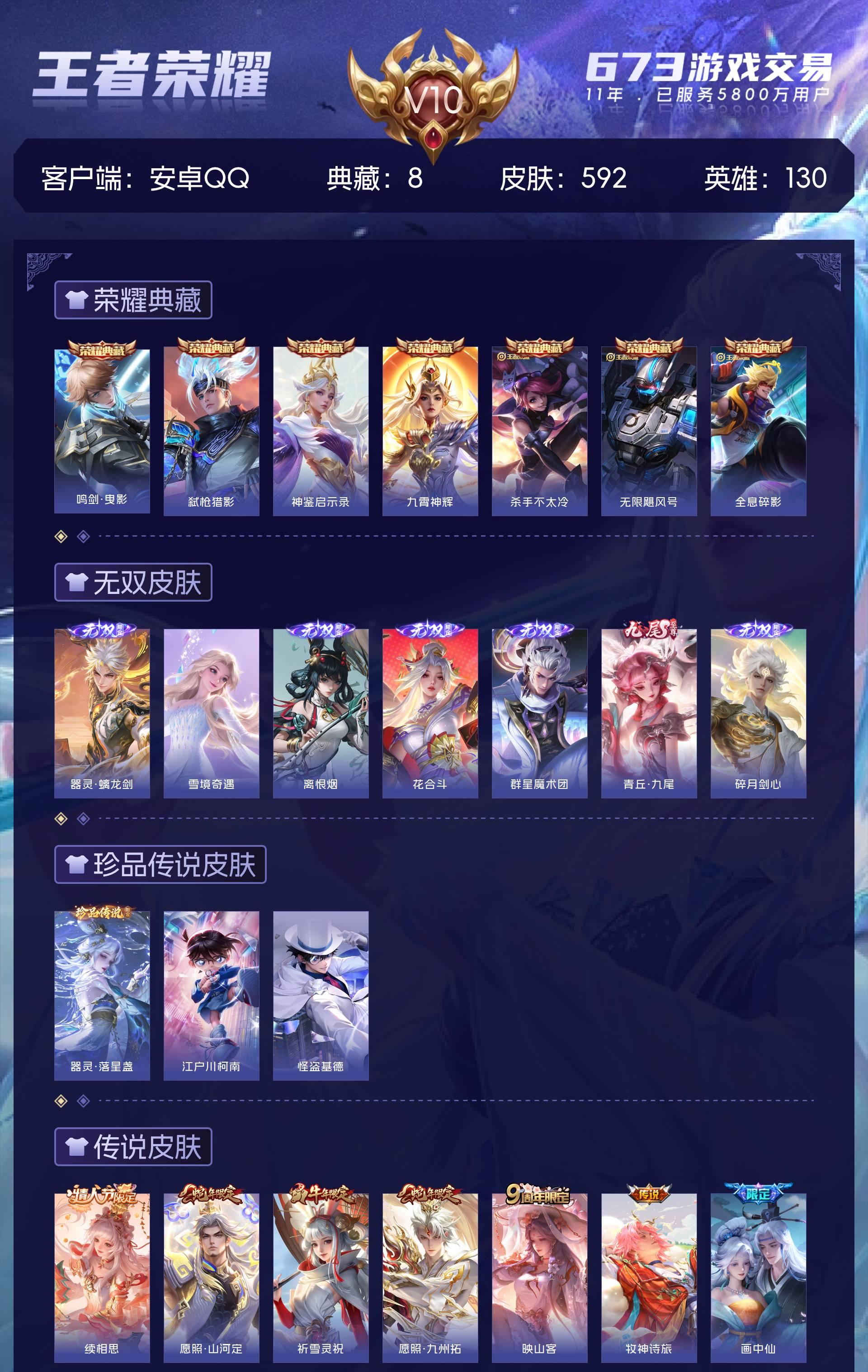 V10 皮肤592 英雄130 尊贵铂金 荣耀典藏8 无双皮肤7 珍品传说3 传说99