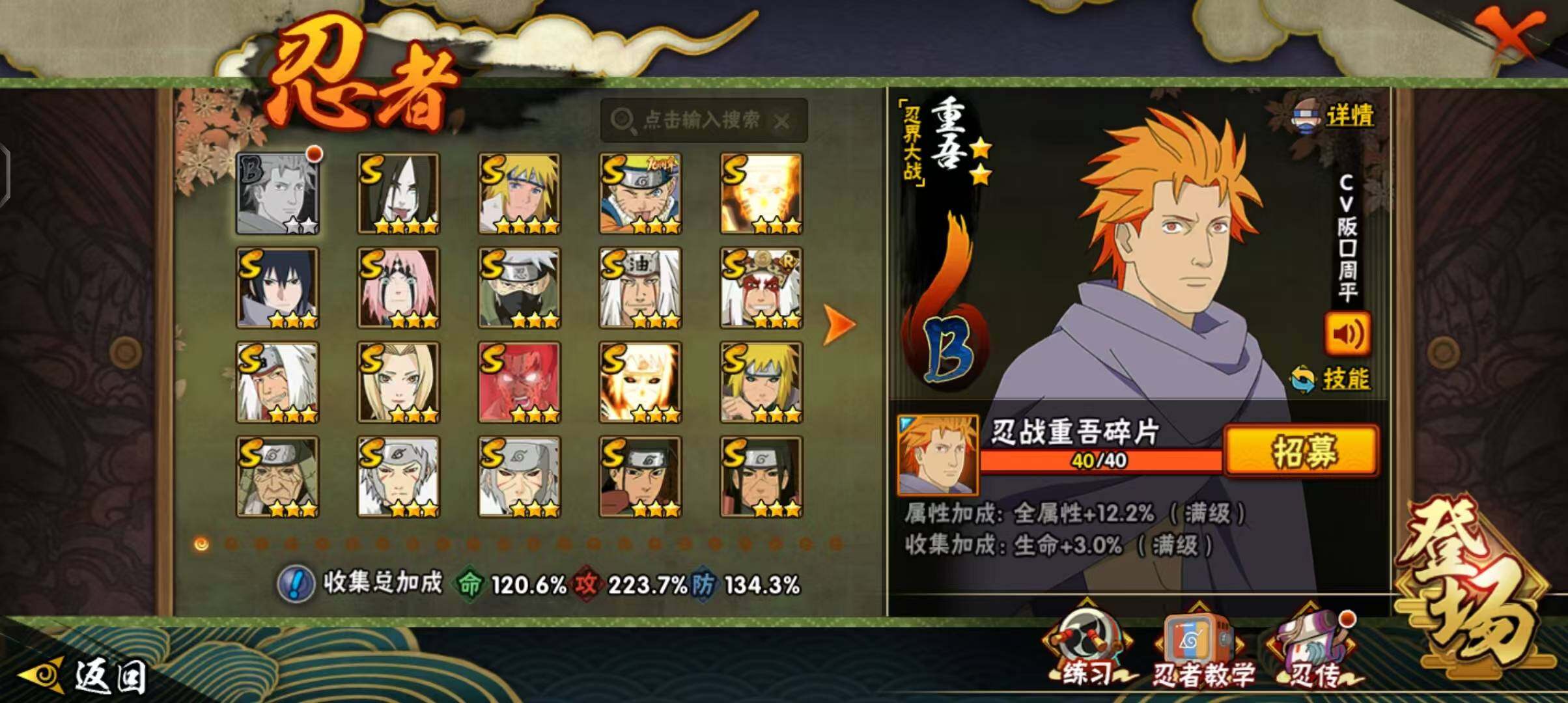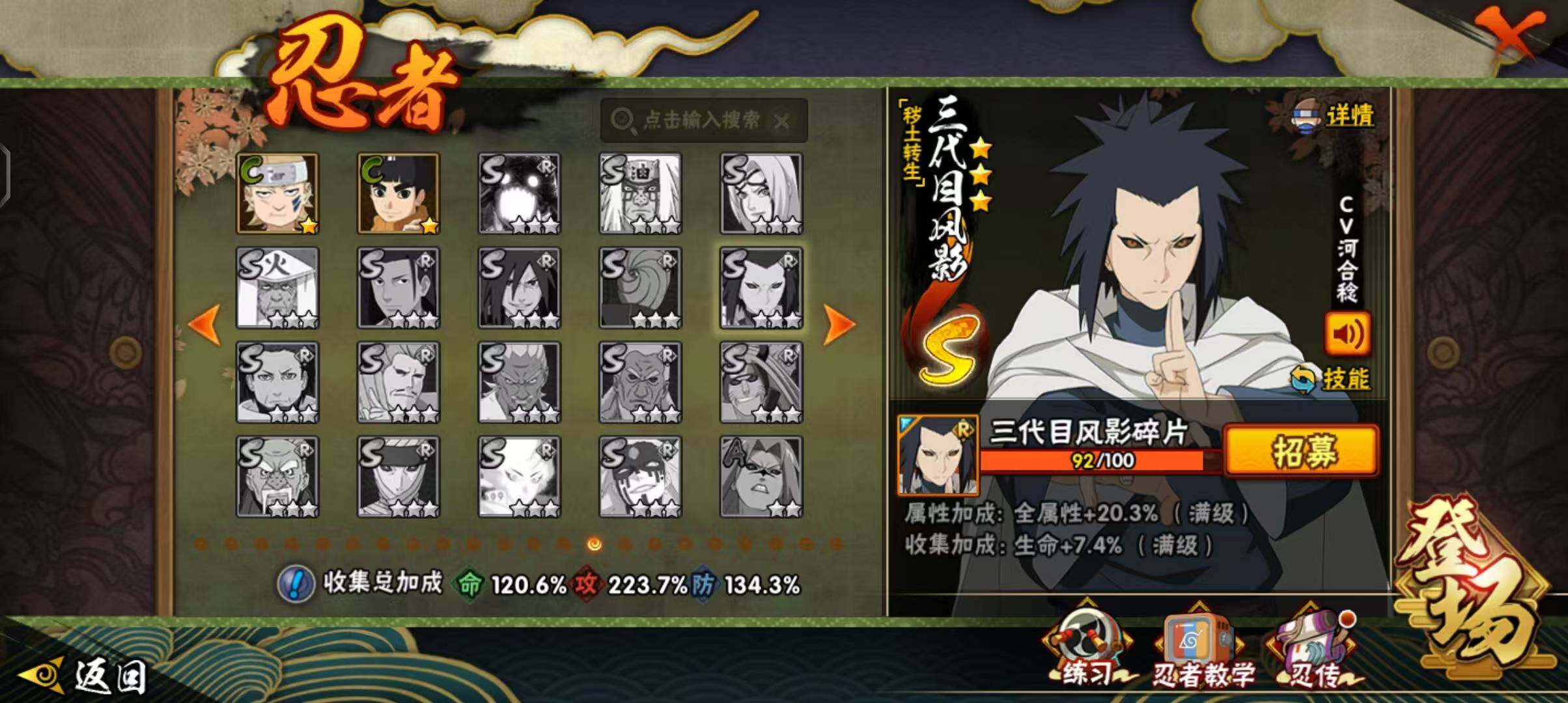 V11/战力1692W/S忍40/A忍52/通灵兽23/