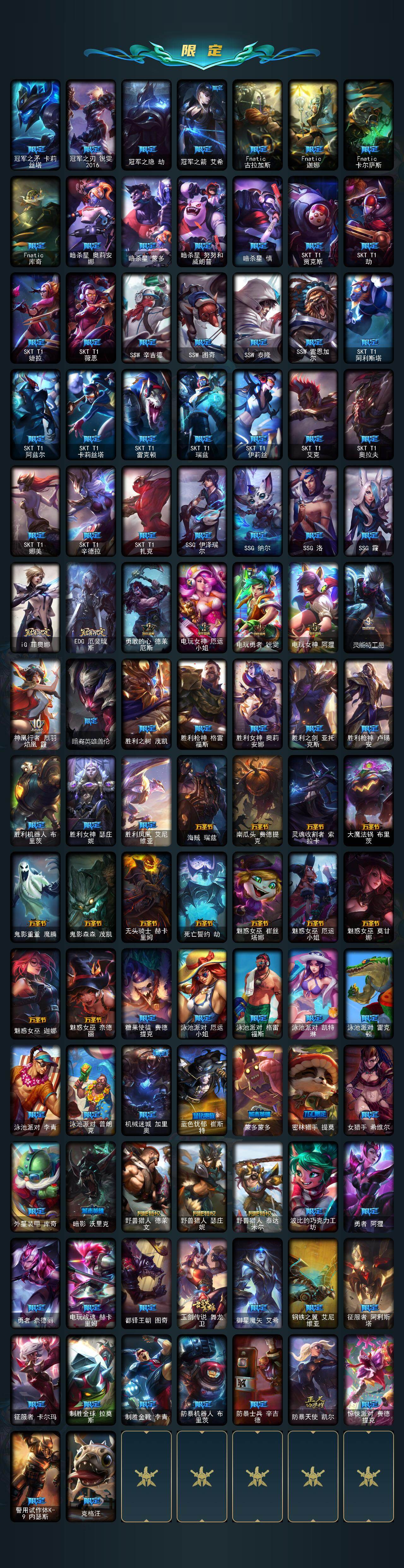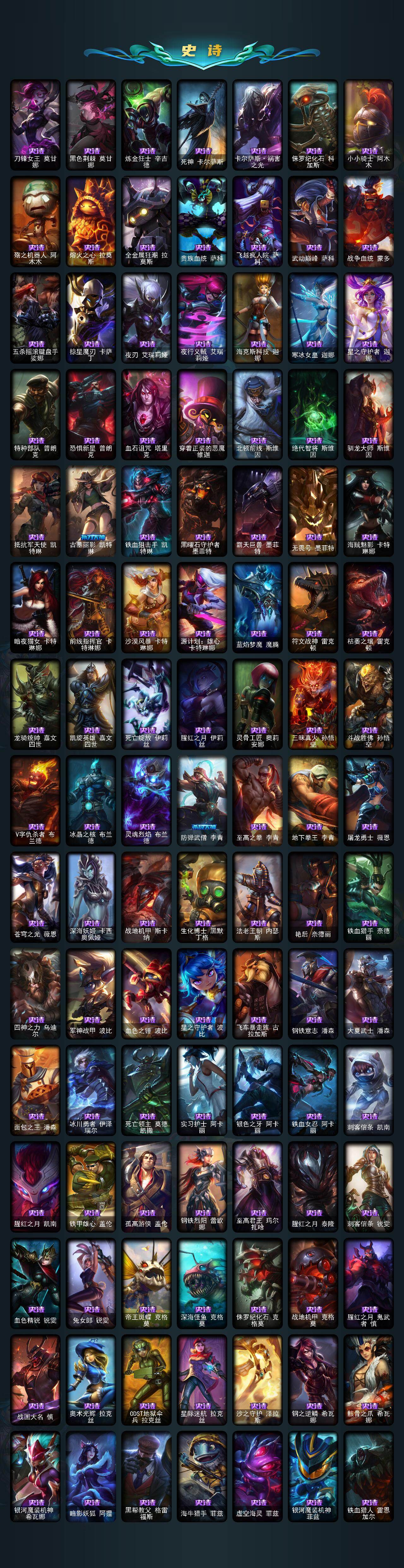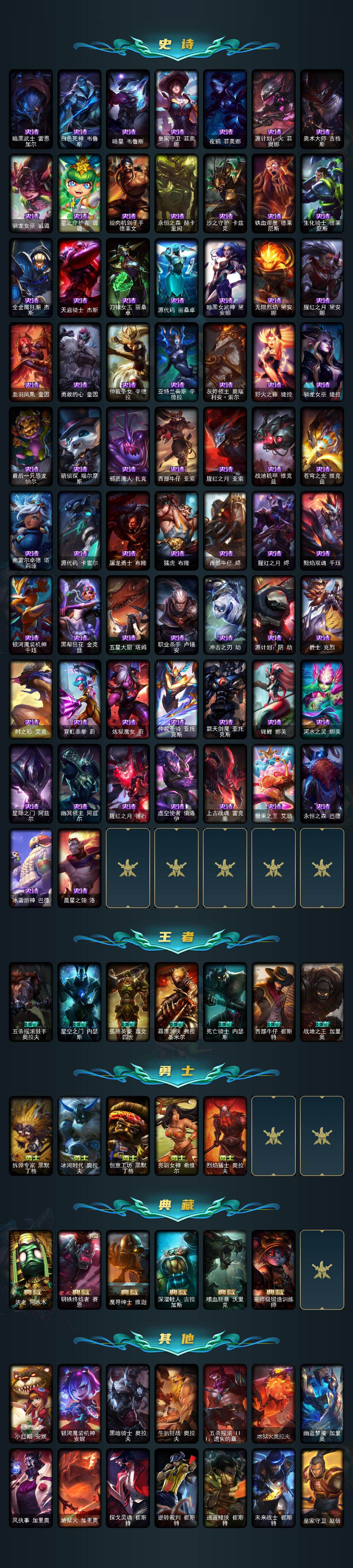 172英雄/844皮肤/3终极/10神话/153限定/20臻彩/