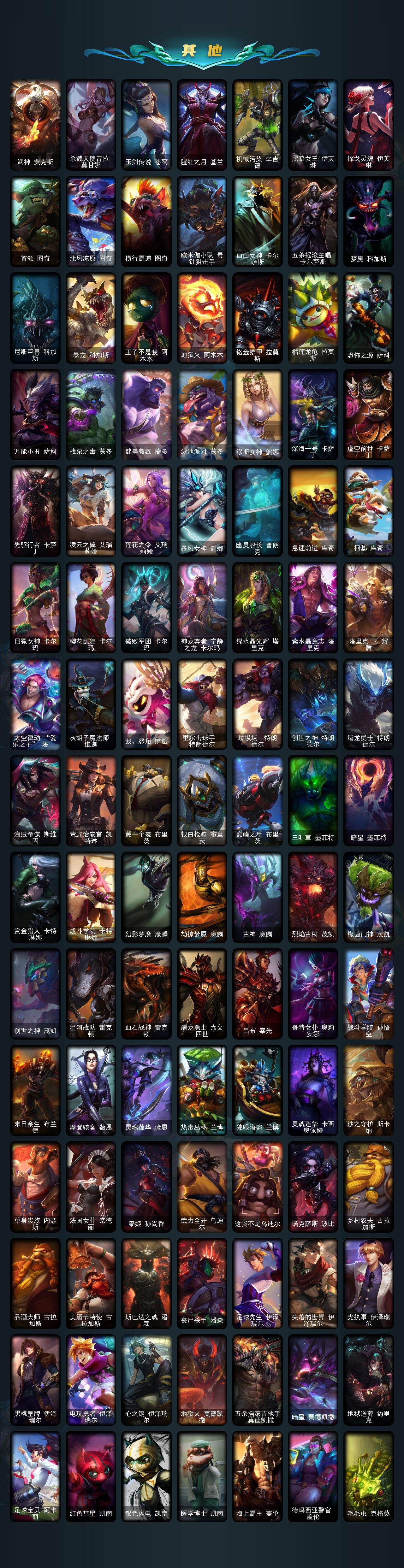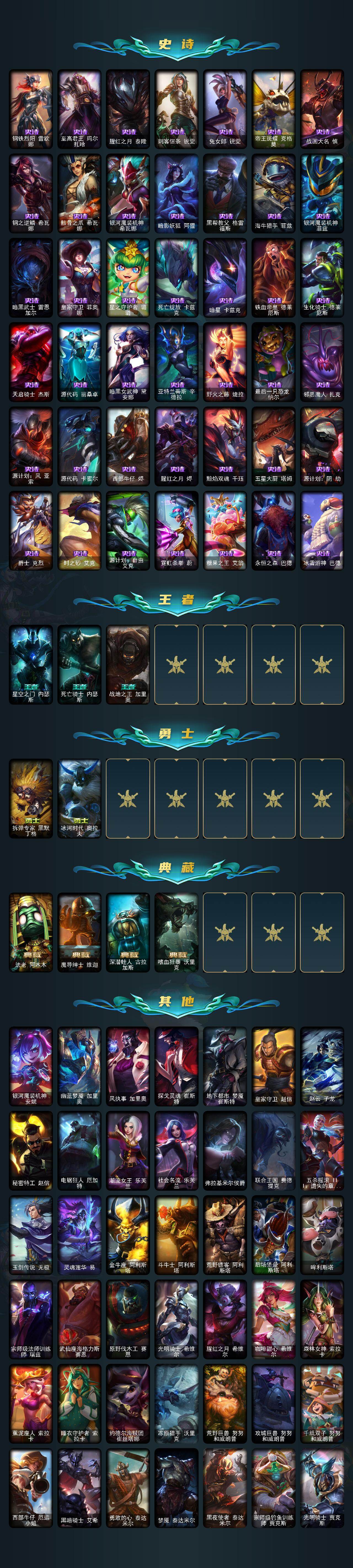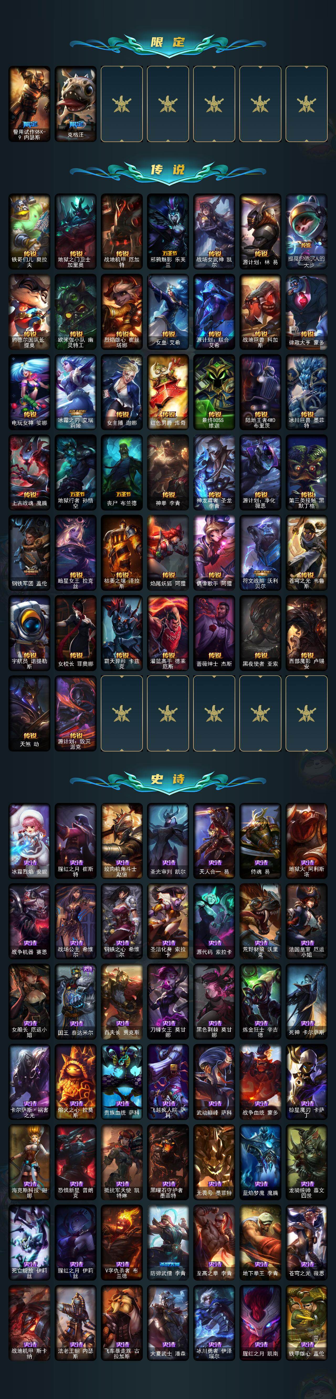 172英雄/436皮肤/5神话/81限定/4臻彩/50炫彩/44