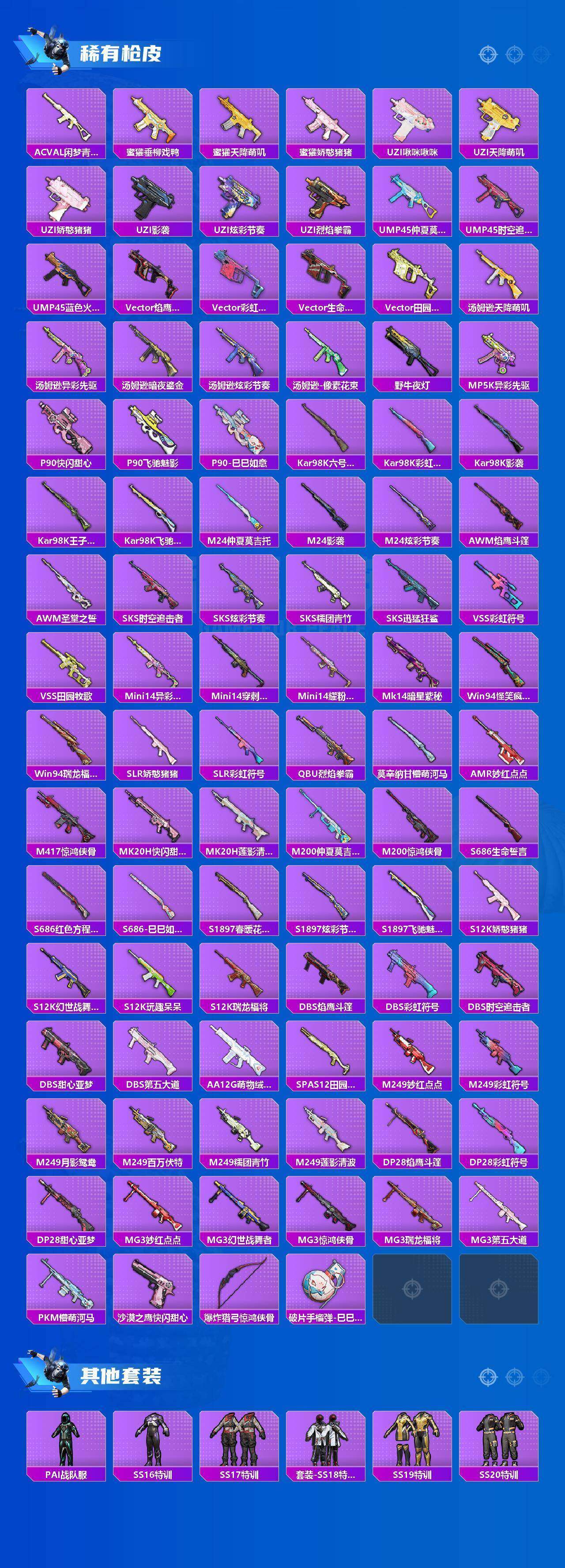 (6粉套5粉枪1载具)地铁马上满天赋/浪漫天命/暗影哥特/暗夜玫瑰/天之羽翼/仲夏莫吉托/天星战神/炎氏战神/角色异瞳寒姬/SCARL纯梦嫁纱六级/Kar98K未来歌姬四级/Kar98K巳巳如意五级/Mk14福马献瑞五级/平底锅仲夏莫吉托六级/宾利飞驰布罗德盖棕双色/没战神框/HP7190-2粉色飞行器-64077热力值-10王牌印记-153套装-216枪皮