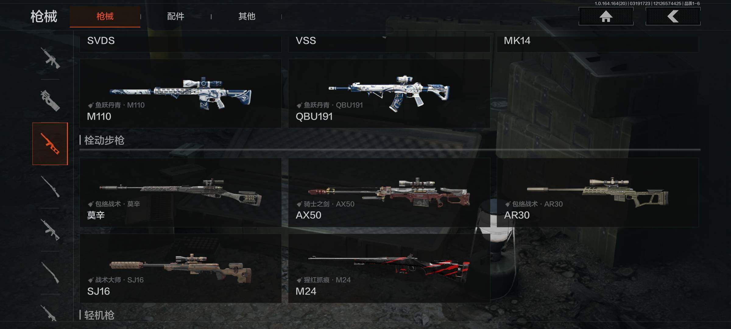 【AQZG1791】等级:30/段位:王牌/仓库价值(百万):65.1/柯恩币:64503973/野战折刀/下弦月/急袭弯刀/赤火炉心/幽燕钛玄/蝮蛇/弗雷德/冥河/深潜行者II/苍白隐者伪装服/林中人特遣作战服/骑士之剑AX50/千炼铁阵MK14/黑金弹头P90/竞技MP5/旧王圣谕QBZ191/玉擎天工AN94/百锻铁骑AEK/地脉深处ACE31/赤帽要塞AR57/林中人FAL/竞技风潮M4A1/长夜千军武将/冲刺极限QBZ192