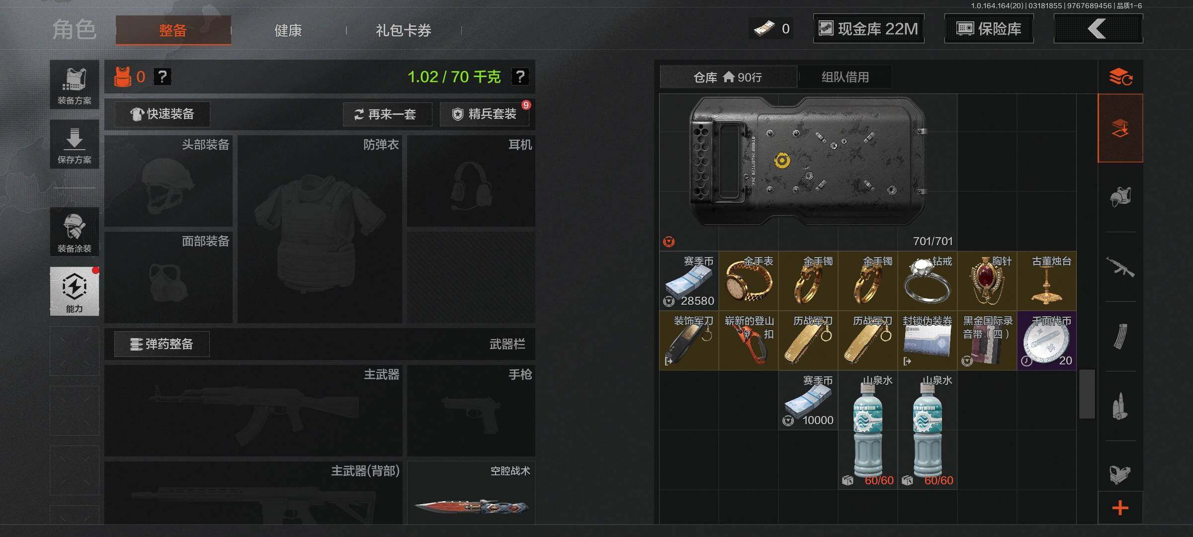 【AQZG1768】等级:30/段位:新锐/仓库价值(百万):41/柯恩币:22458232/收割者/百炼恒常/空腔战术/骑士之剑AX50/骑士之剑VSS/旧王圣谕VSS/利齿风暴MPX/百锻铁骑AEK/战术大师AN94/告丧夜曲AR57/告丧夜曲AUG/竞技FAL/伦琴幻影FAL/冥王