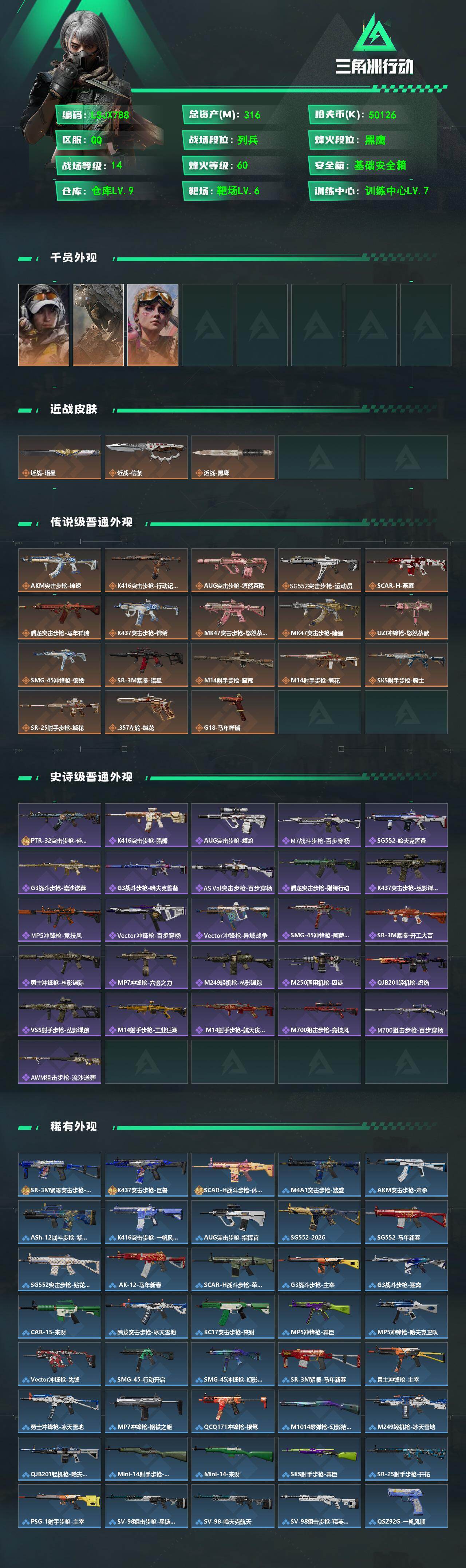 316m总资产-50126k哈夫币-60烽火等级-黑鹰-14战场等级-列兵