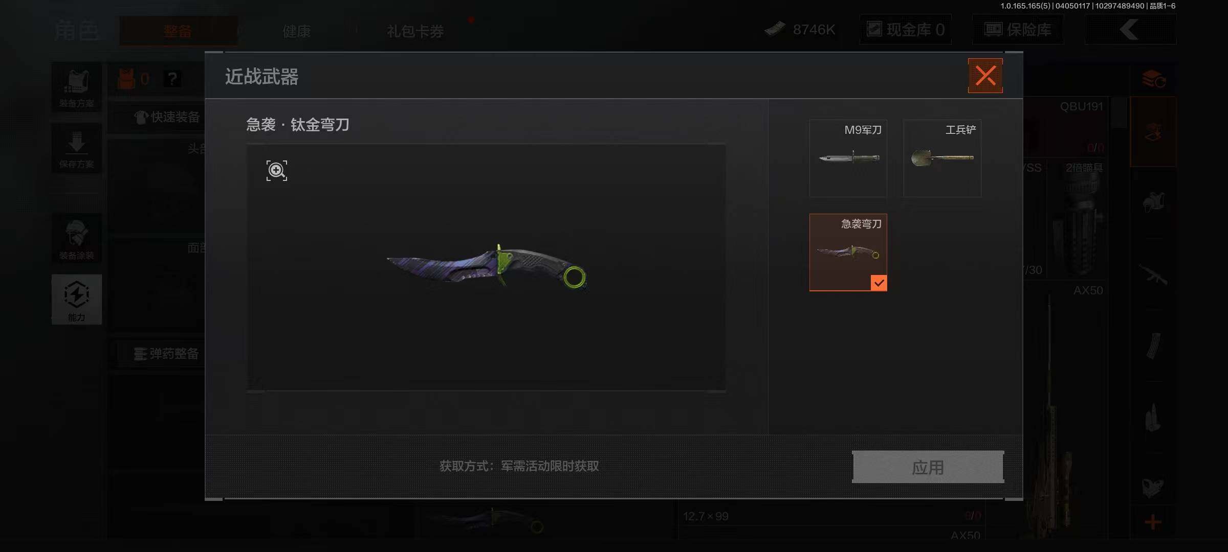 【AQZ371】等级:30/段位:精英/仓库价值(百万):28.1/柯恩币:8746/工兵铲/急袭弯刀/告丧夜曲AR57/旧王圣谕QBZ191/浮鳞影青QBZ192/利齿风暴MPX/旧王圣谕VSS