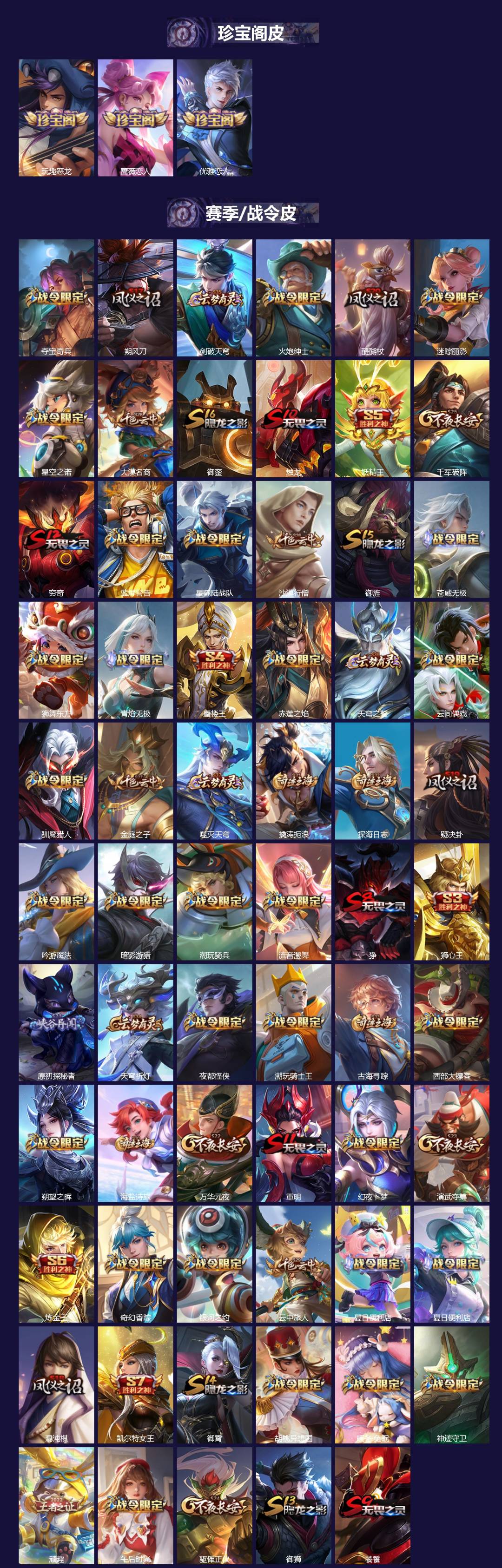 【稀有英雄】敖隐(小龙人),大司命,嬴政(始皇帝),韩信(韩跳跳),夏洛特(夏师傅),艾琳,橘右京(橘子),娜可露露(鸟人),不知火舞,赵云,金蝉(唐僧),戈娅
