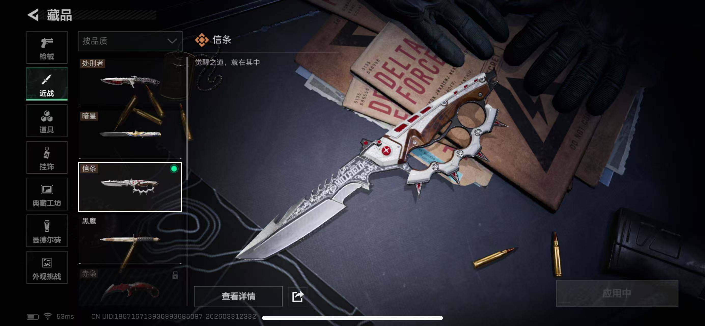 【SJ1627】行动等级:60 总资产:711M 哈夫币:20565.6W 近战武器:近战武器-信条,近战武器-暗星,近战武器-处刑者 干员皮肤:电锯惊魂,金牌射手,维什戴尔,不破誓约,不羁人生 典藏外观:M7战斗步枪-棱镜攻势S2 安全箱:顶级安全箱9(3x3) 鹅鸭杀鹅鸭杀,暗星捆绑包,缄花捆绑包,悠然茶歇捆绑包 三角币:1 三角券:373