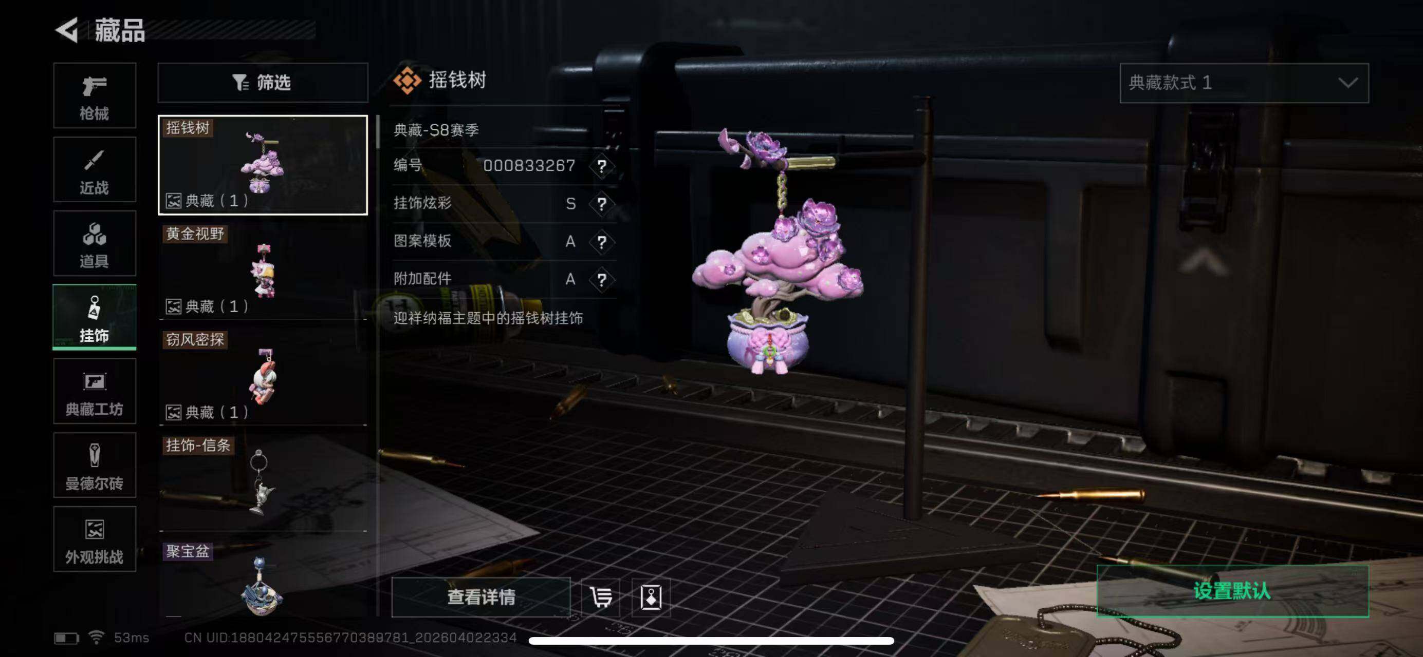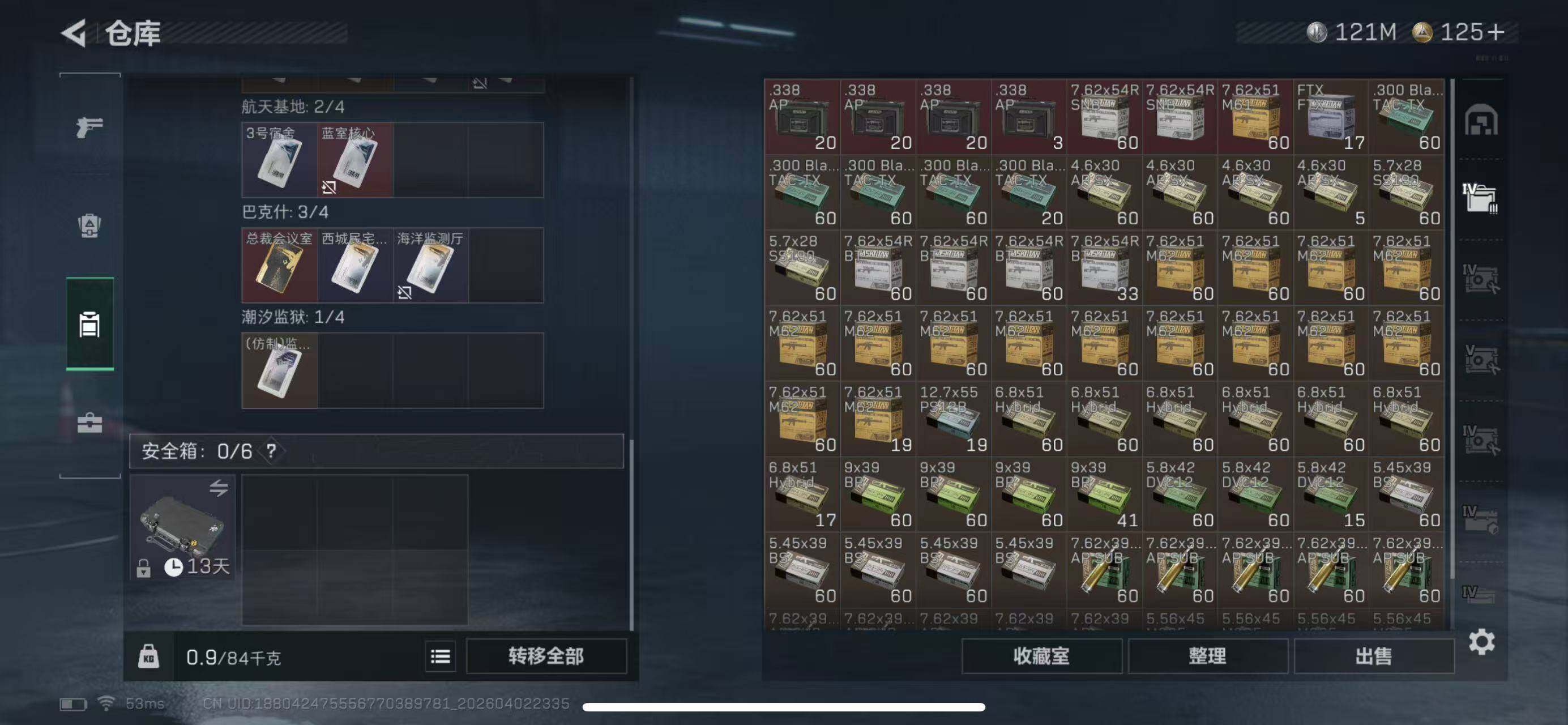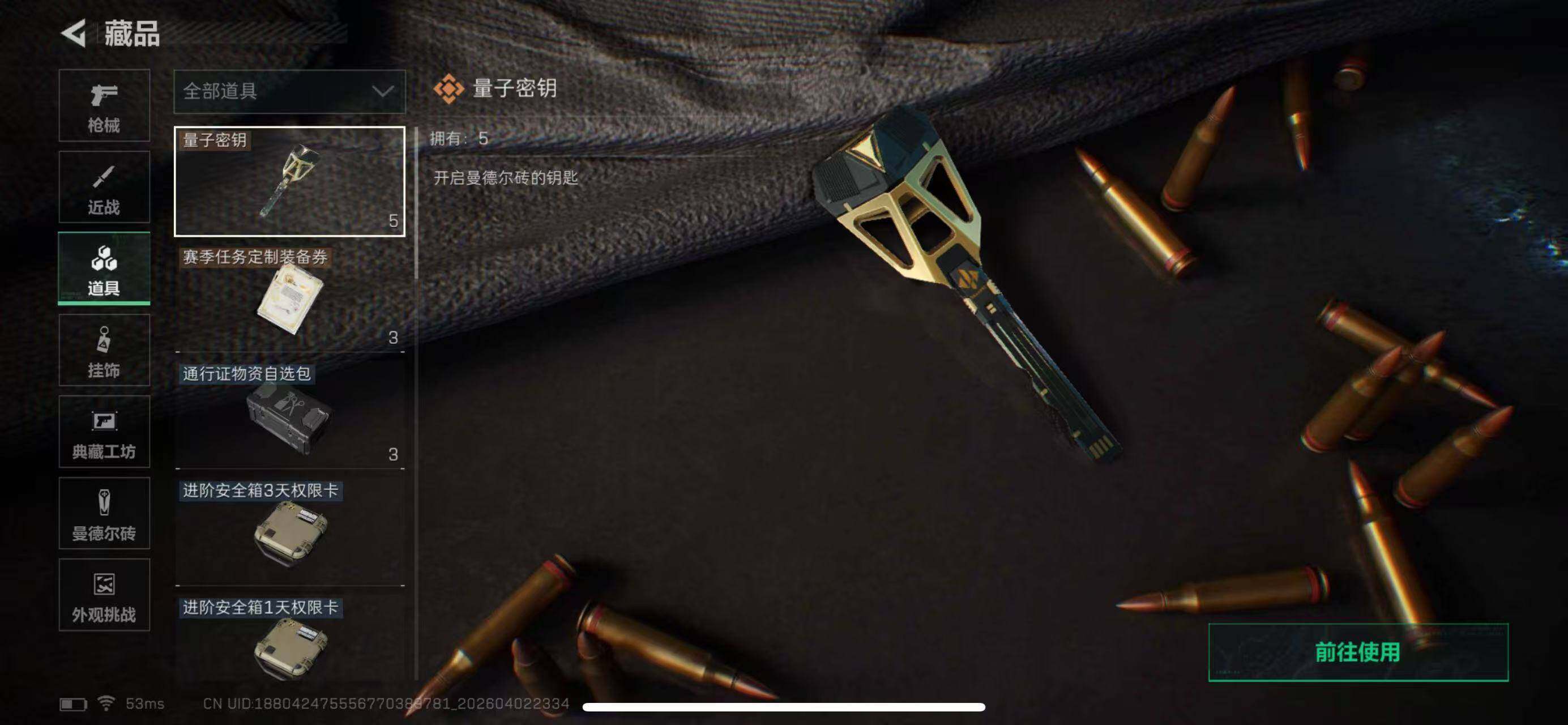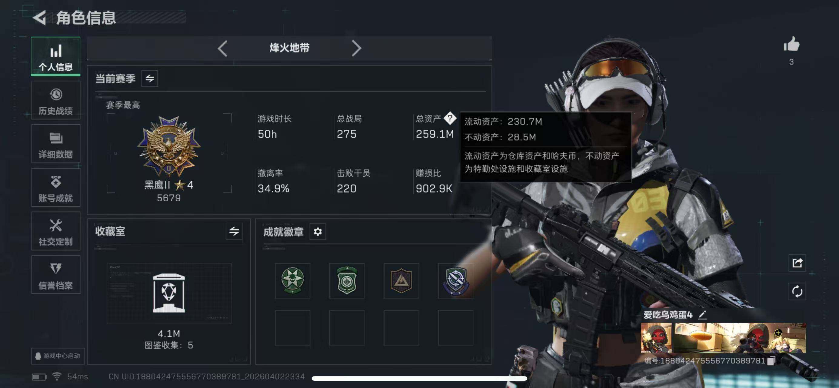 行动等级:60 总资产:260.0M 哈夫币:K 近战武器:近