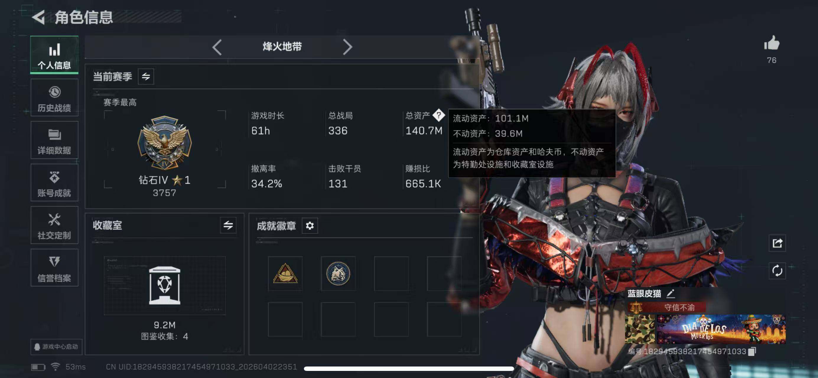 141m总资产-15846k哈夫币-60烽火等级-钻石-31战
