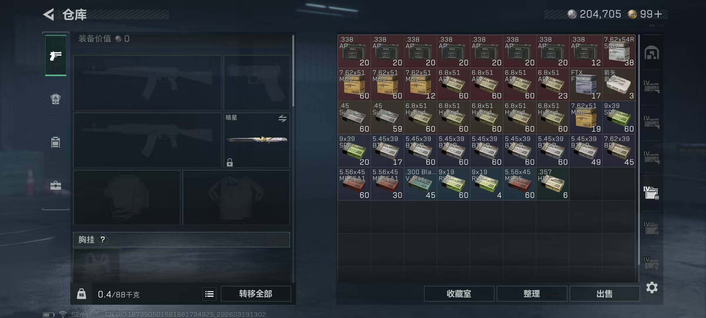 【SJ1463】【有二次信条暗星带S8顶级3X3/152发AW子弹】60级/总资138M/流资59M/99点卷/M7战斗步枪-棱镜攻势S2(优品S)刀皮(信条+处刑者+暗星)威龙(凌霄戍卫+壮志凌云)牧羊人(街头之王)露娜(金牌射手)/9级仓库7级体力7级负重3级潜水/152发AW子弹+373发其他红弹
