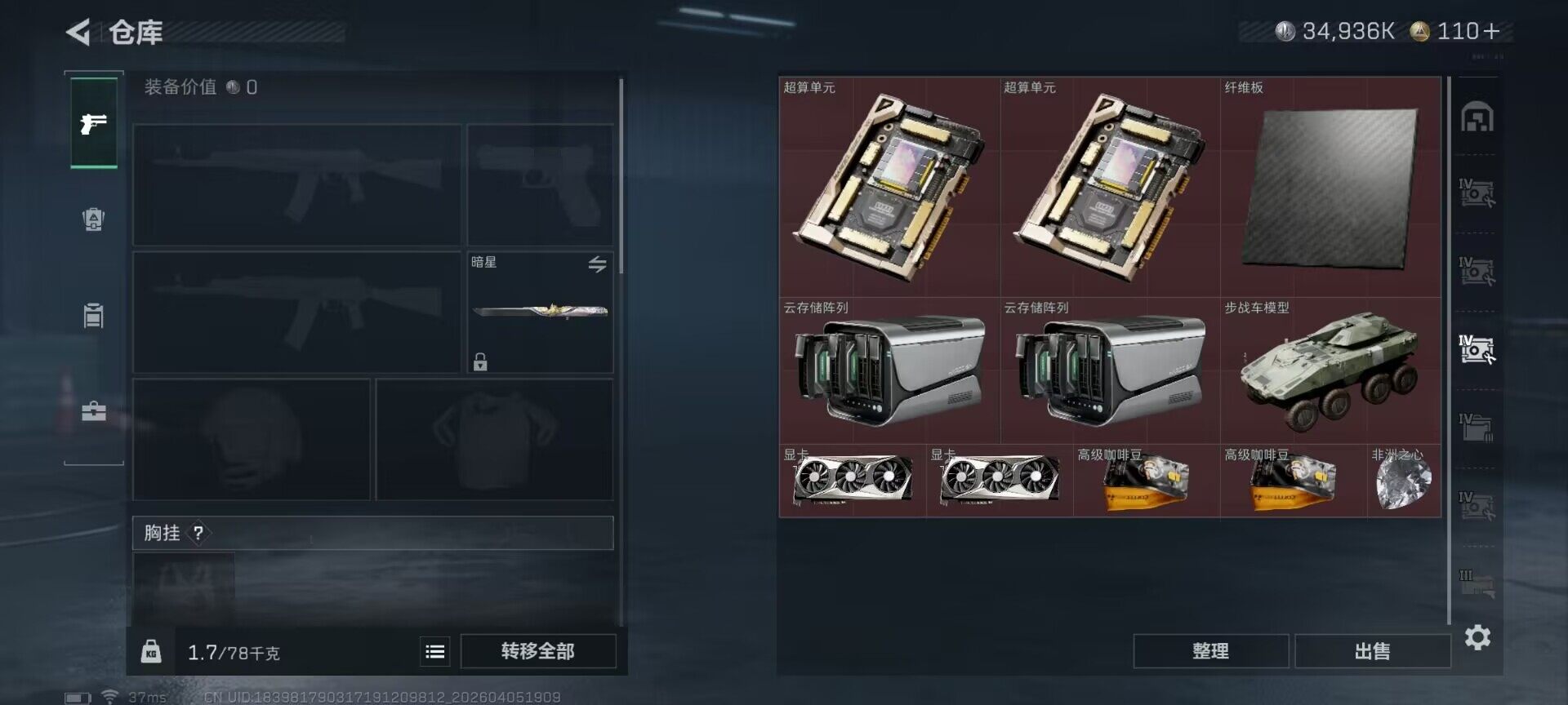 【SJZG4690】总资产(M):184M/哈夫币(K):34936K/哈夫币(K):34936K/传说枪皮数:44/全面战场等级:10_段位:列兵/烽火地带等级:60_段位:钻石/红狼-蚀金玫瑰/露娜-黑·天际线/威龙-凌霄戍卫/威龙-飞虎/蜂医-送葬人·无题密令/无名-夜鹰/深蓝-不破誓约/红狼-电锯惊魂/蛊-不羁人生/近战-暗星/近战-黑海/近战-黑鹰/SCAR-H战斗步枪-电玩高手/SCAR-H战斗步枪-电玩高手(优品S)/M4A1突击步枪-蚀金玫瑰/M4A1突击步枪-阿米娅/AKM突击