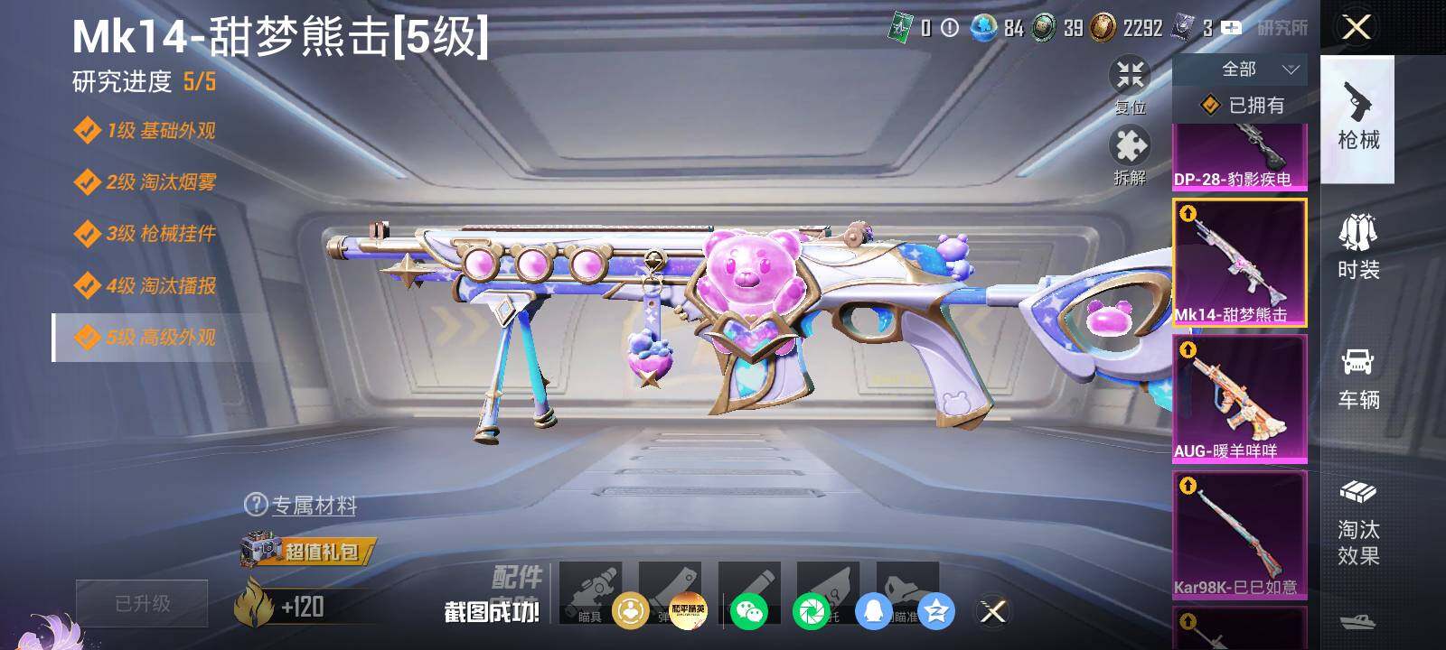 【粉色枪皮等级】:SCAR-L-纯梦嫁纱(六级),Kar98K-巳巳如意(二级)