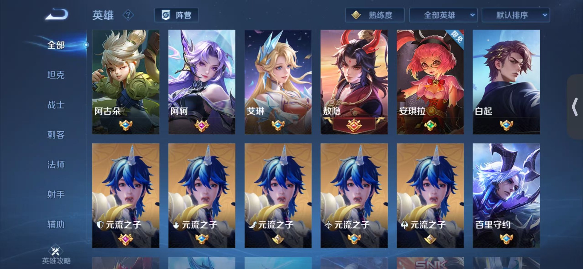 【稀有英雄】敖隐(小龙人),大司命,嬴政(始皇帝),韩信(韩跳跳),夏洛特(夏师傅),艾琳,橘右京(橘子),娜可露露(鸟人),不知火舞,赵云,金蝉(唐僧),戈娅