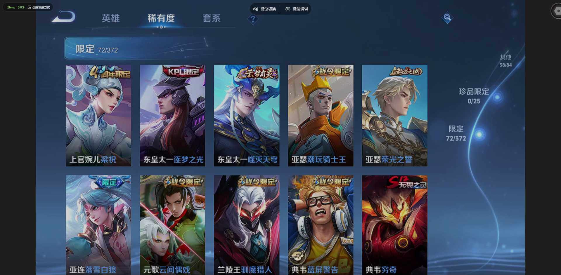 【金标裴擒虎】实名: 可修改 贵族等级: V7 英雄数: 128 皮肤数: 2