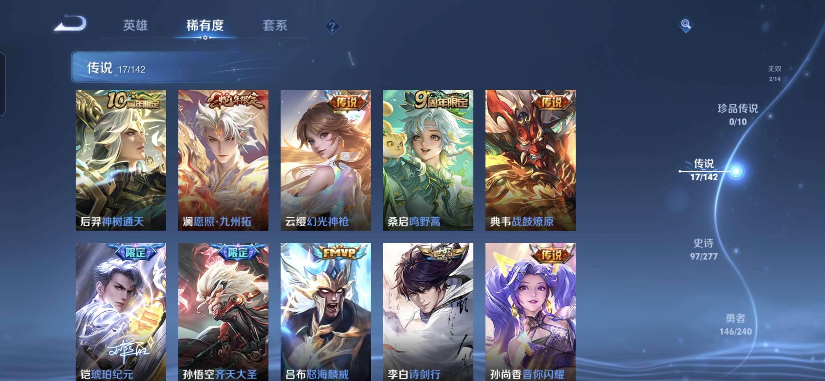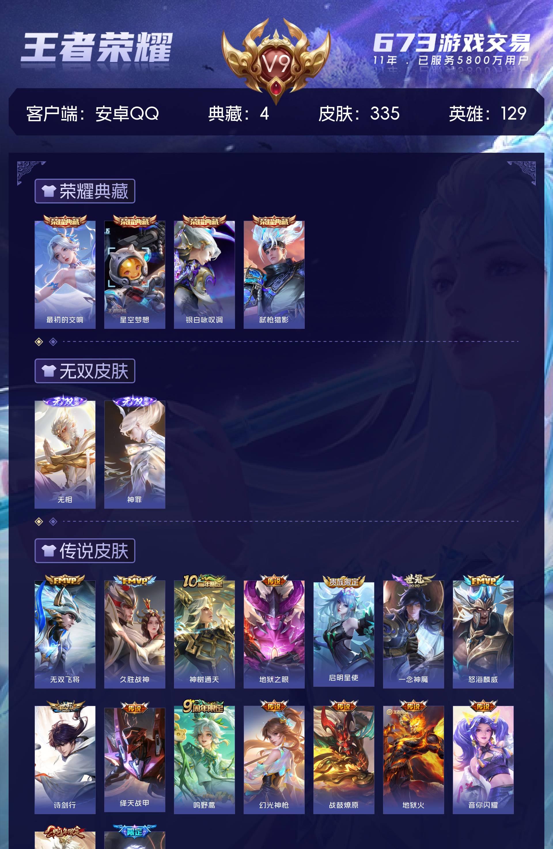 V9 皮肤335 英雄129 永恒钻石 荣耀典藏4 无双皮肤2 星传说1 传说16