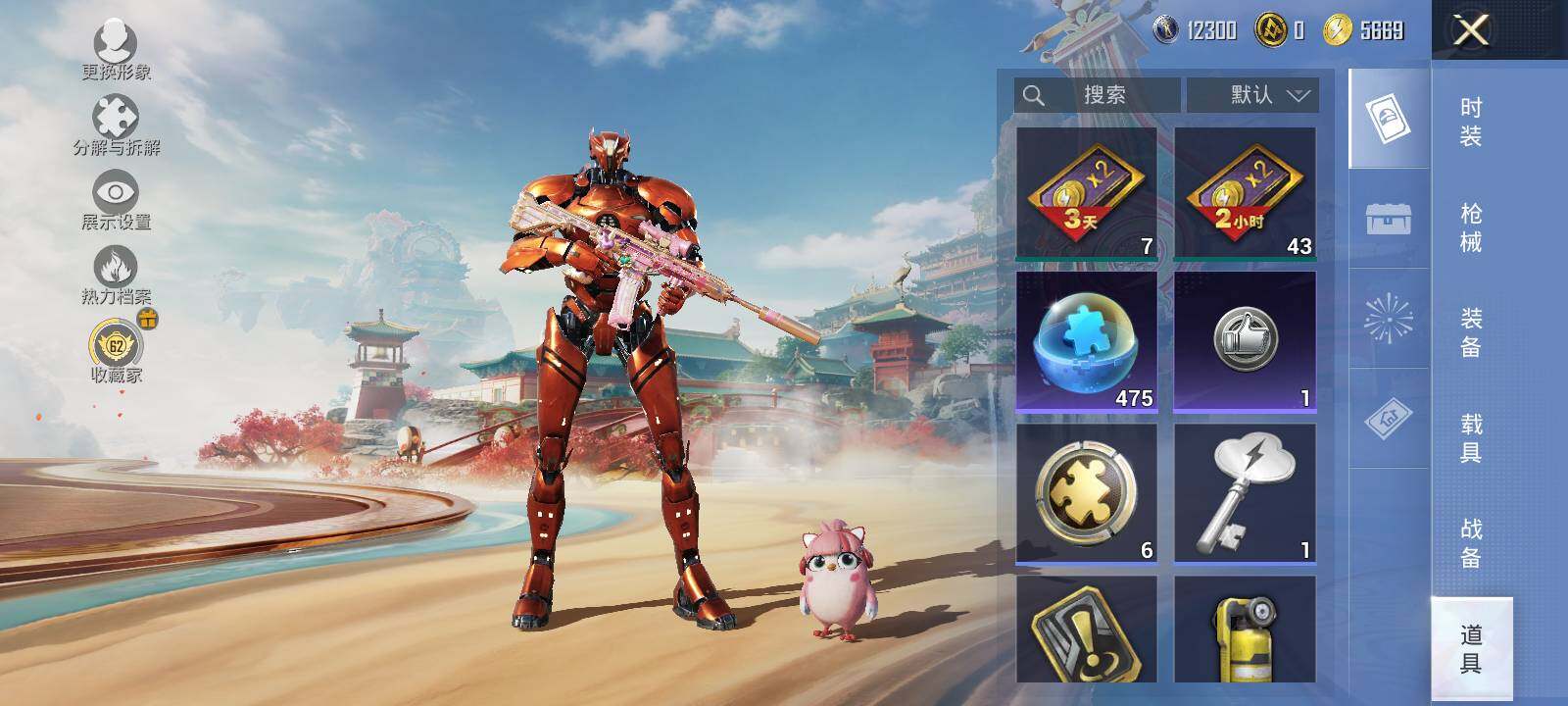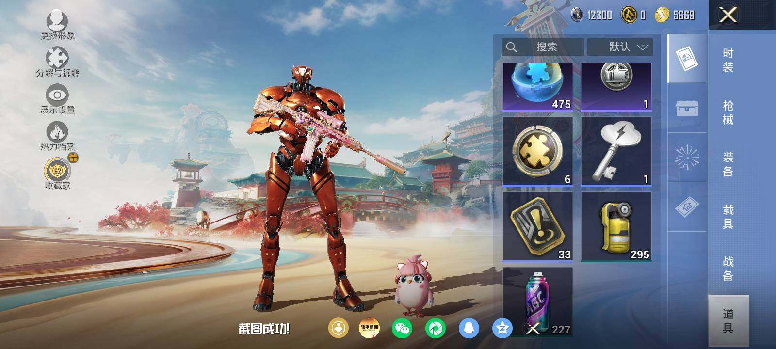 安卓 手Q-7粉装-7特效枪-0载具-1粉色飞行器-55959热力值-1王牌印记-106套装-175枪皮