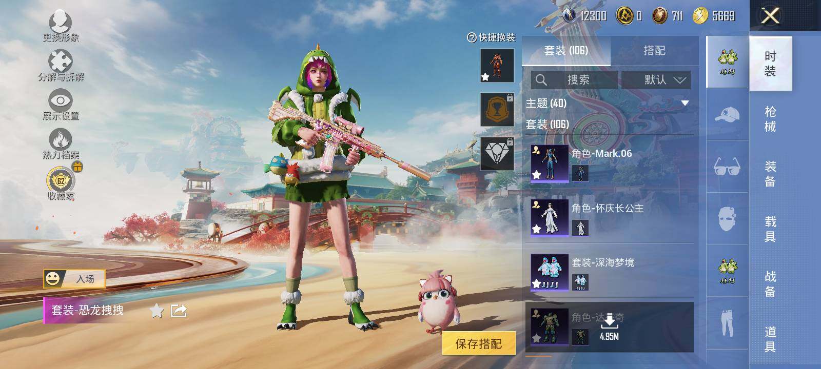 【粉色枪皮等级】:M416-心之恋语(六级),UMP45-恐龙拽拽(七级),Kar98K-创世·
