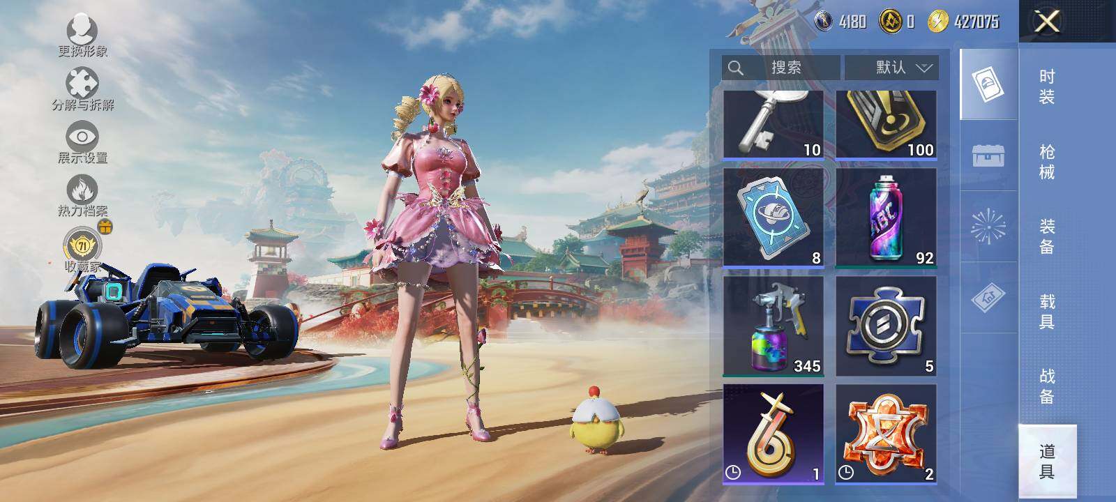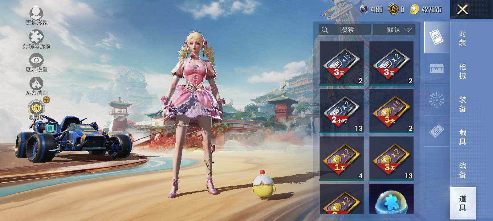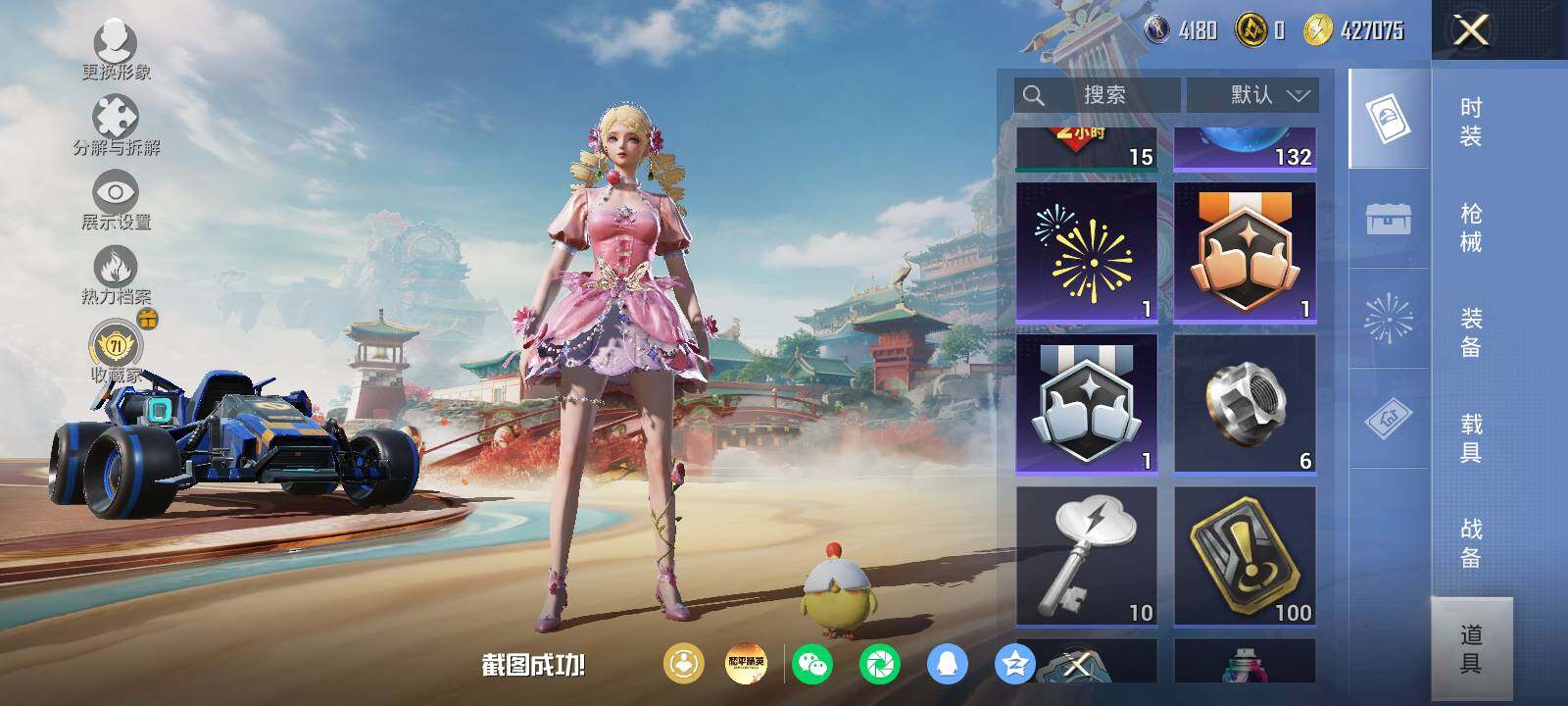 安卓 手Q-4粉装-5特效枪-3载具-3粉色飞行器-86458热力值-21王牌印记-215套装-262枪皮