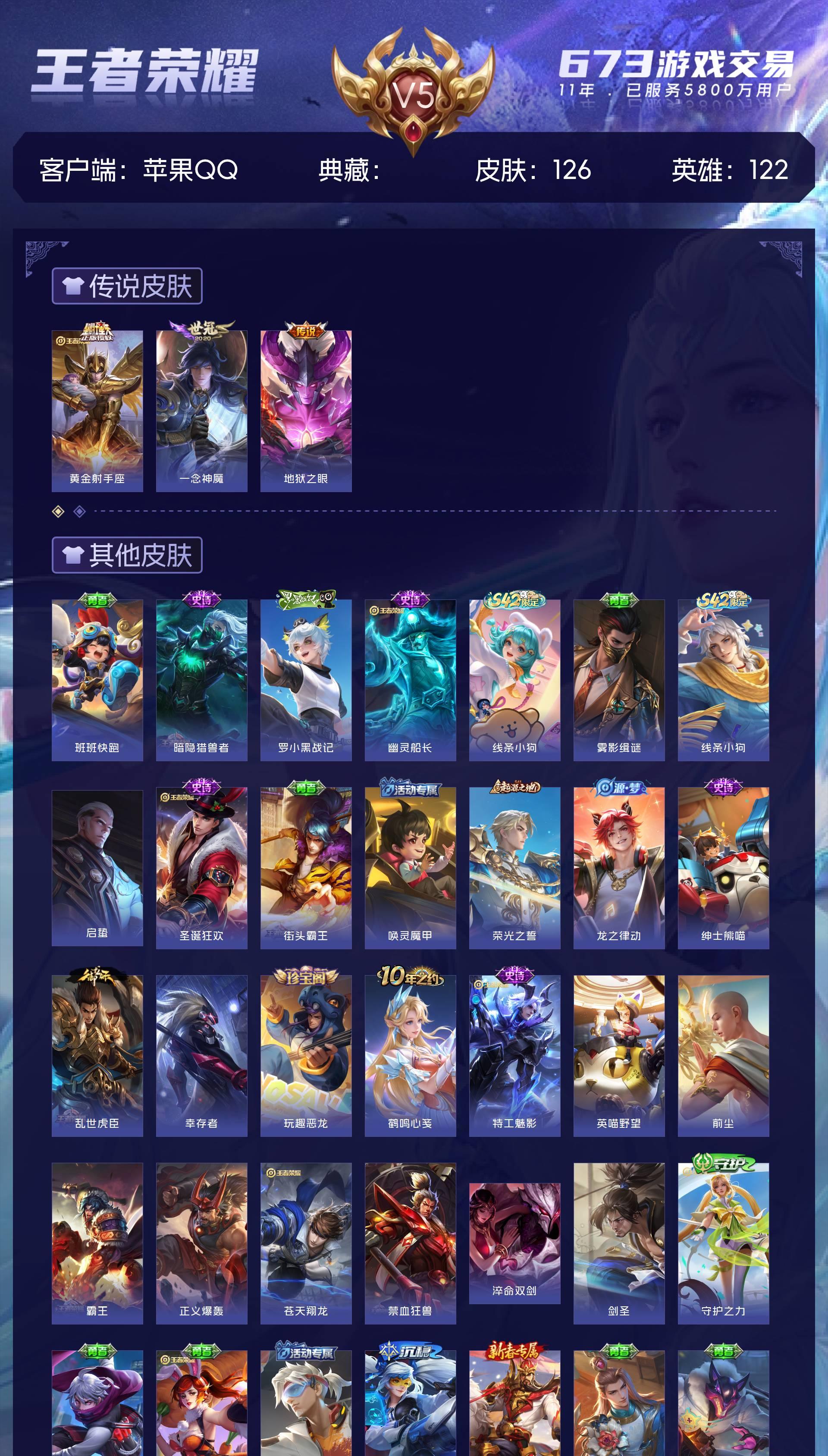 V5 皮肤126 英雄122 尊贵铂金 传说3