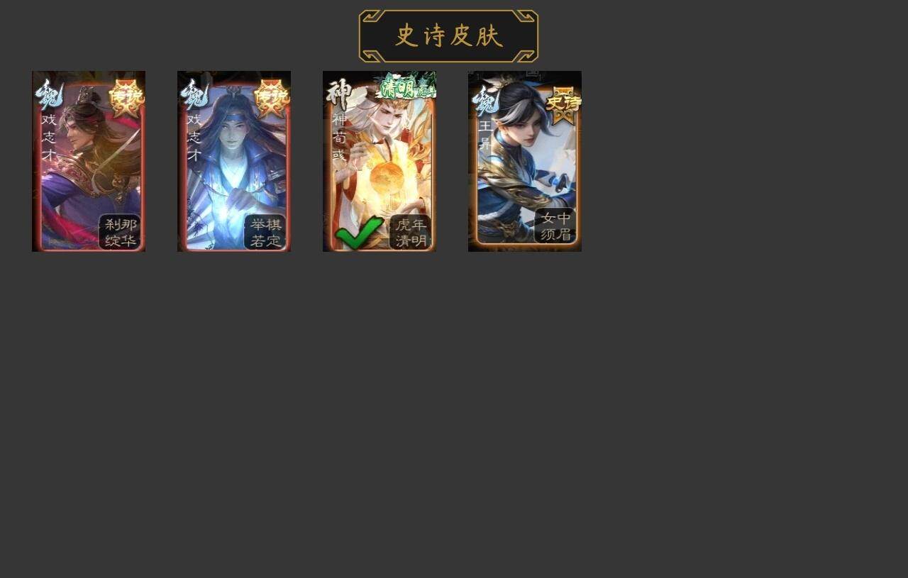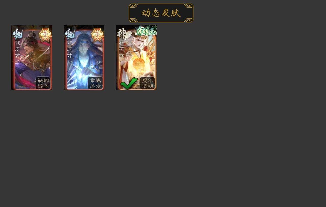 官阶:先锋将军;VIP等级:VIP3;史诗武将数量:2;动态皮肤数量:3;武将