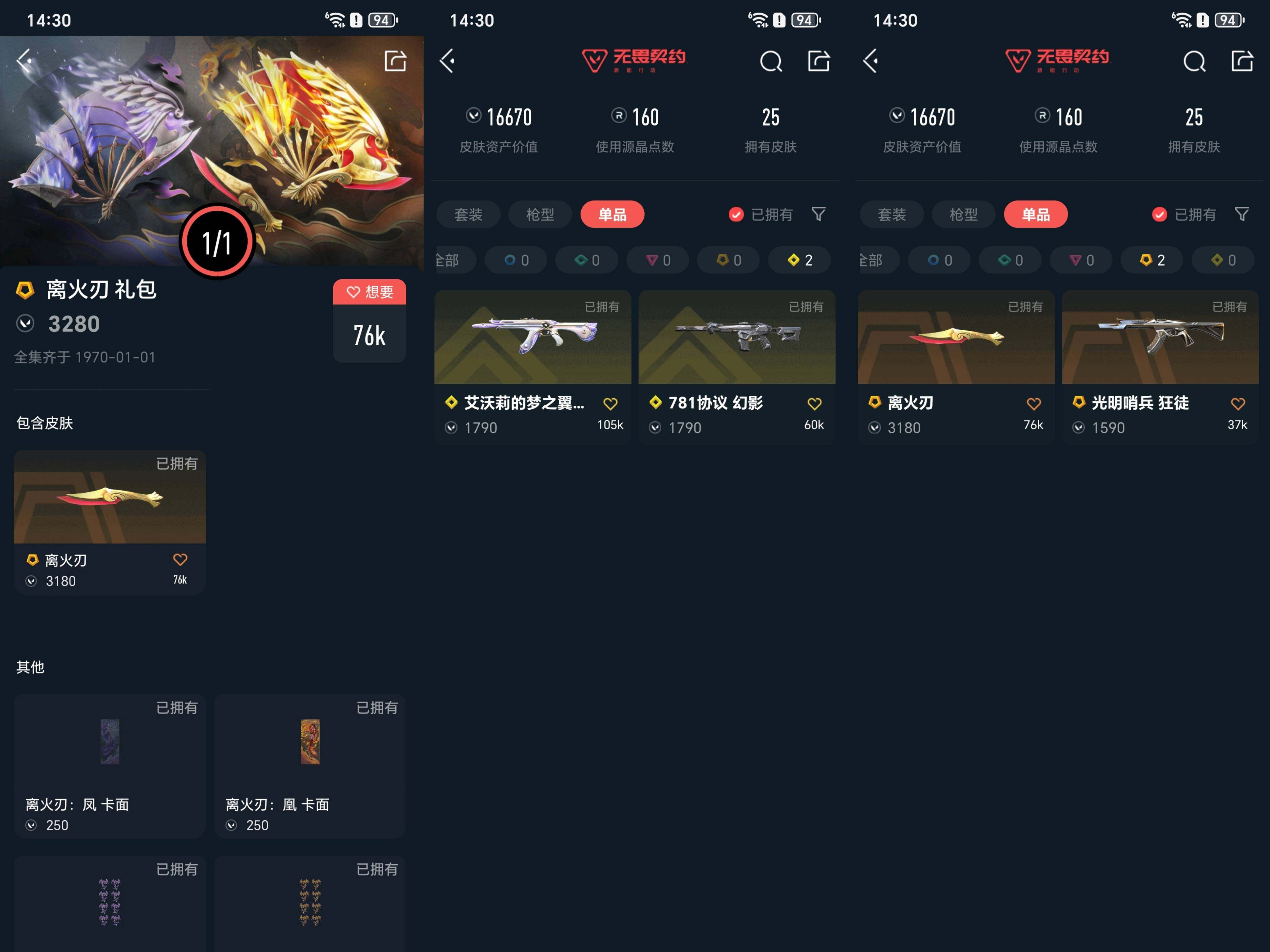 ac29,离火刃礼包,2黄皮2橙皮2紫皮,幻影,狂徒,鬼魅,苦无,卡面29喷漆
