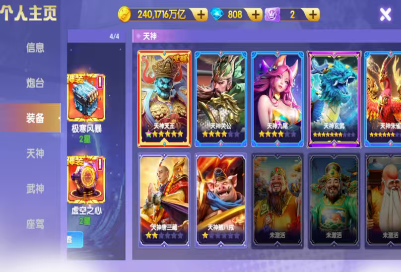 小米V8高配 240京神电1.5万炮 天王觉醒1⭐️关羽狐狸⭐️三级洪荒 连斩1800 买断