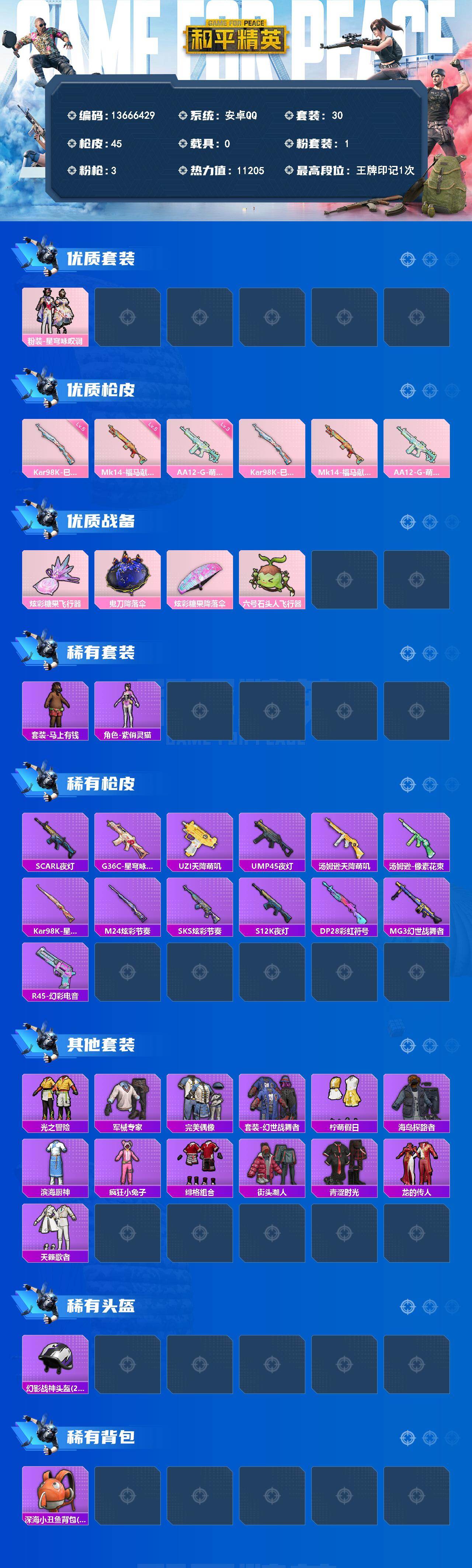 30套装/枪械3/装备52/战备29/王牌印记1/热力值11205/五级Kar