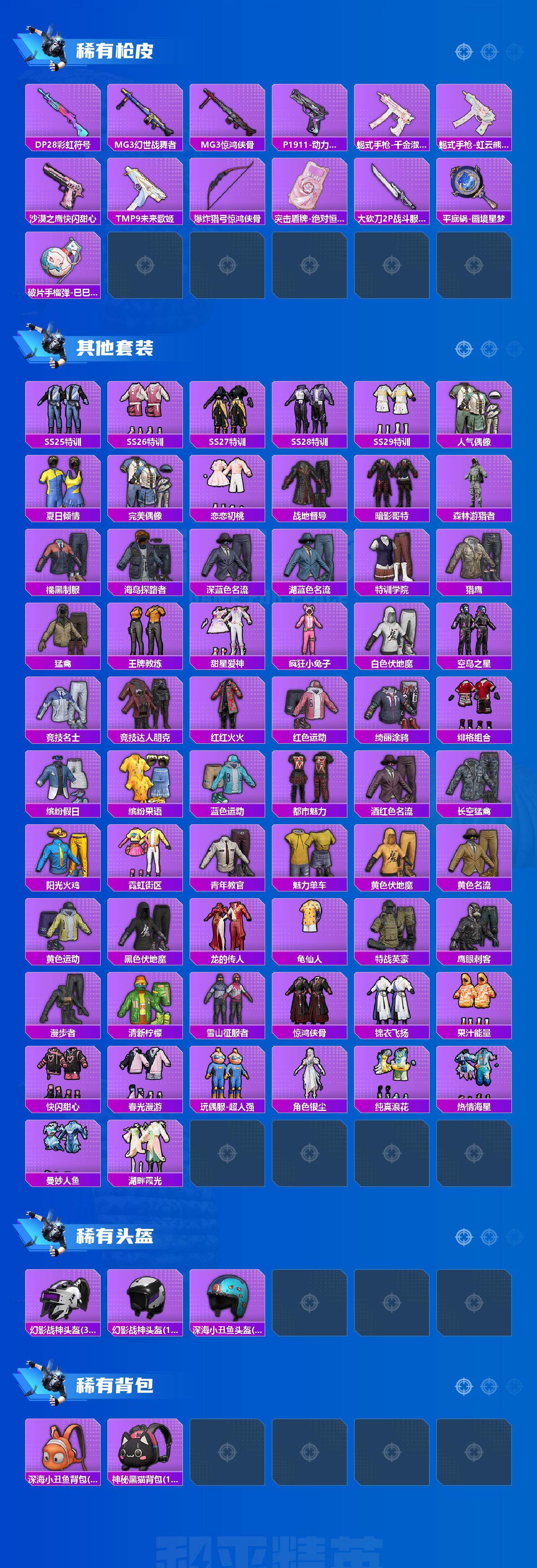 【粉色枪皮等级】:SCAR-L-锦绣绵绵(五级),M416-电玩时刻(五级),GROZA-镜光银凌(五级),AUG-暖羊咩咩