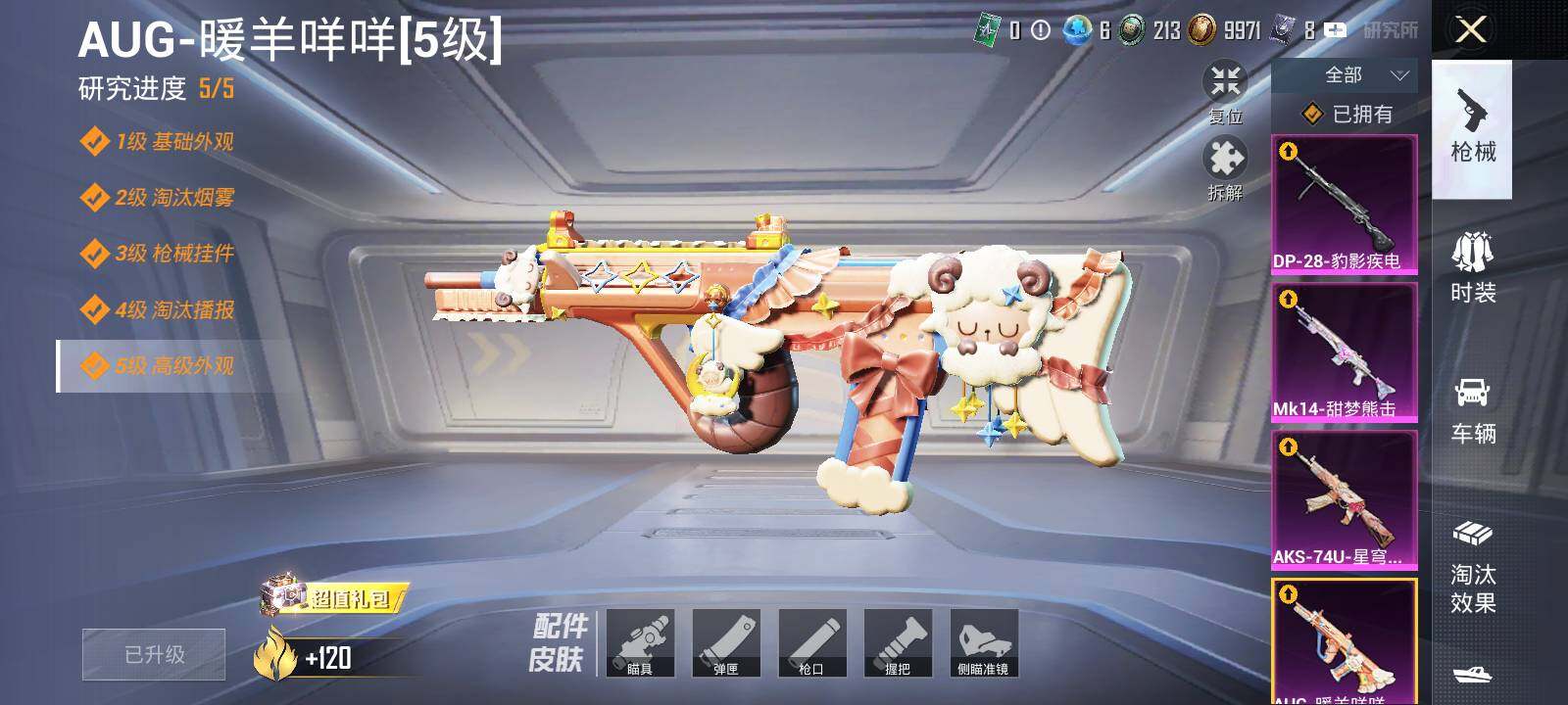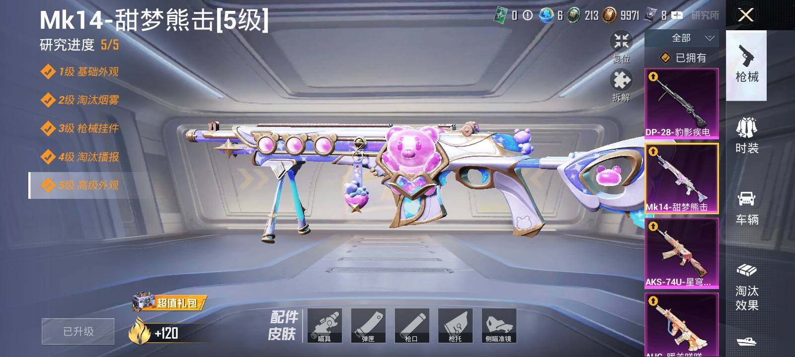 【粉色枪皮等级】:Kar98K-巳巳如意(五级),M417-第五大道(七级),DP-2