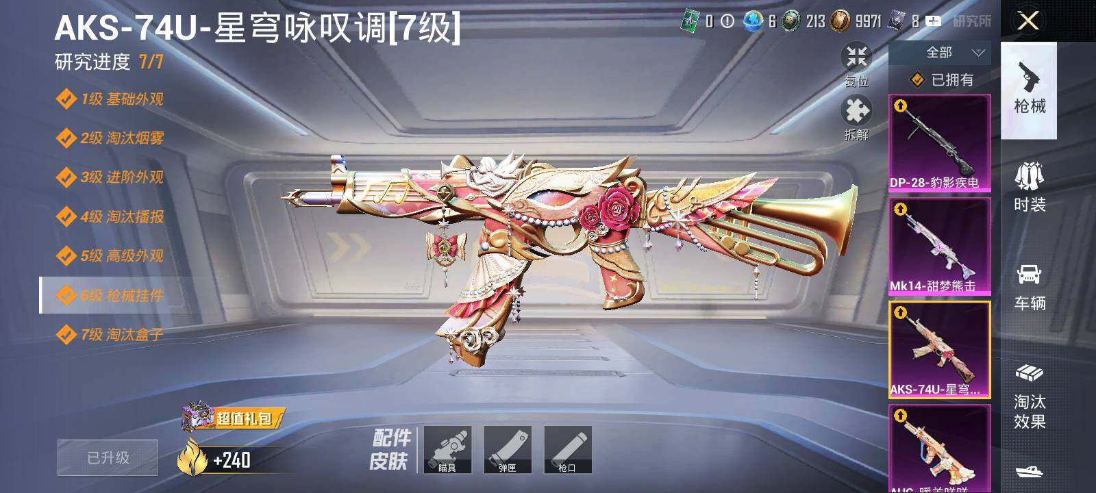 安卓 手Q-9粉装-3特效枪-0载具-1粉色飞行器-51994热力值-10王牌印记-139套装-164枪皮