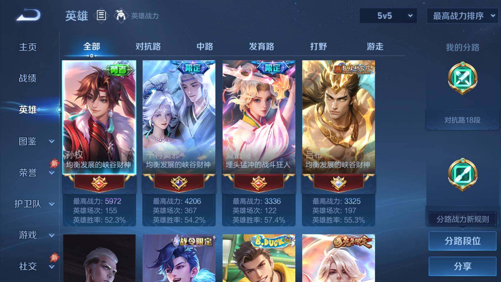 【16776893】贵族6/皮肤304/典藏1/传说21/史诗89/英雄128
