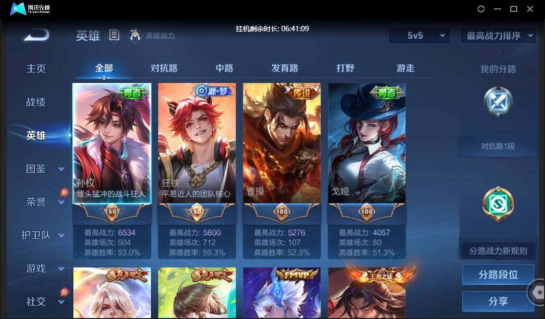 【W6807】安卓QQ-有二次-贵6-128英雄-129皮肤-8传说-41限定