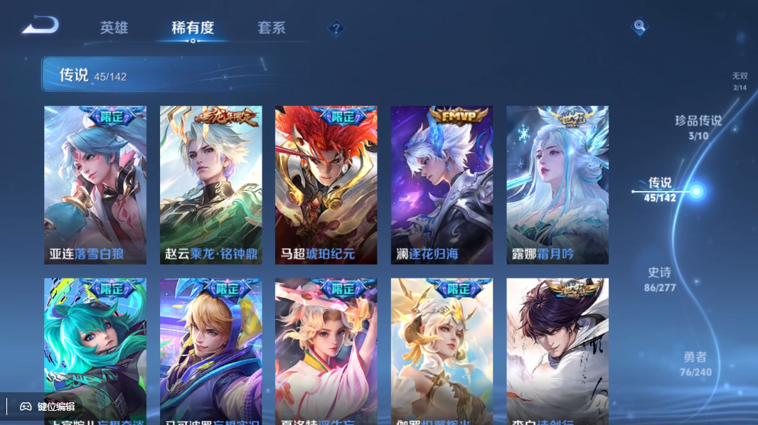 低价出顶级贵族9账号1典藏2无双3珍品传说45传说皮肤数24