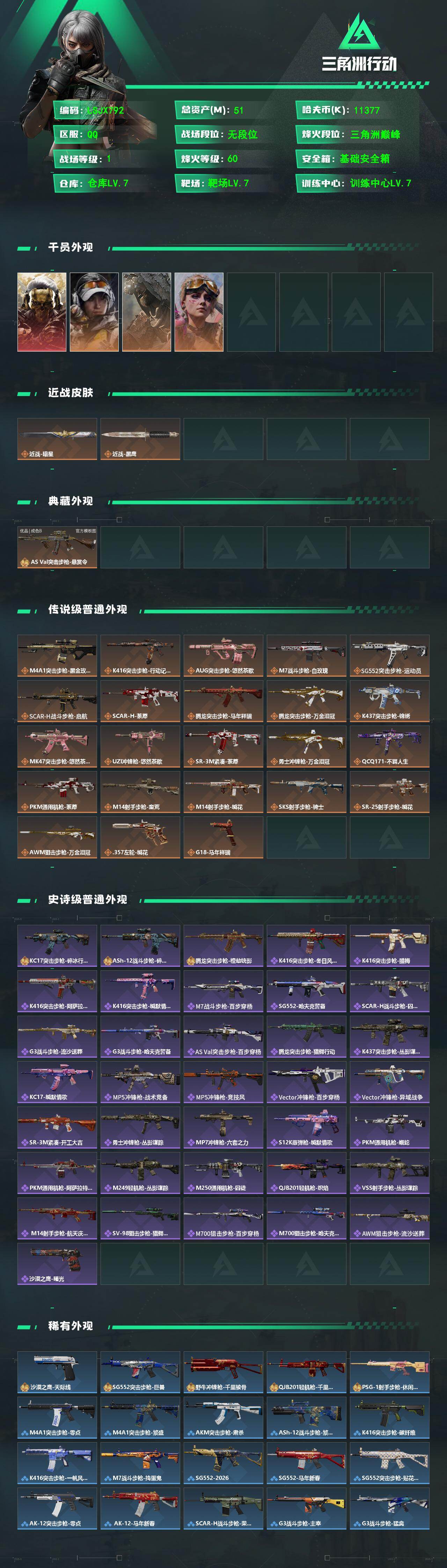 【特价出售/店主推荐】51m总资产-11377k哈夫币-60烽火等级-三角洲巅