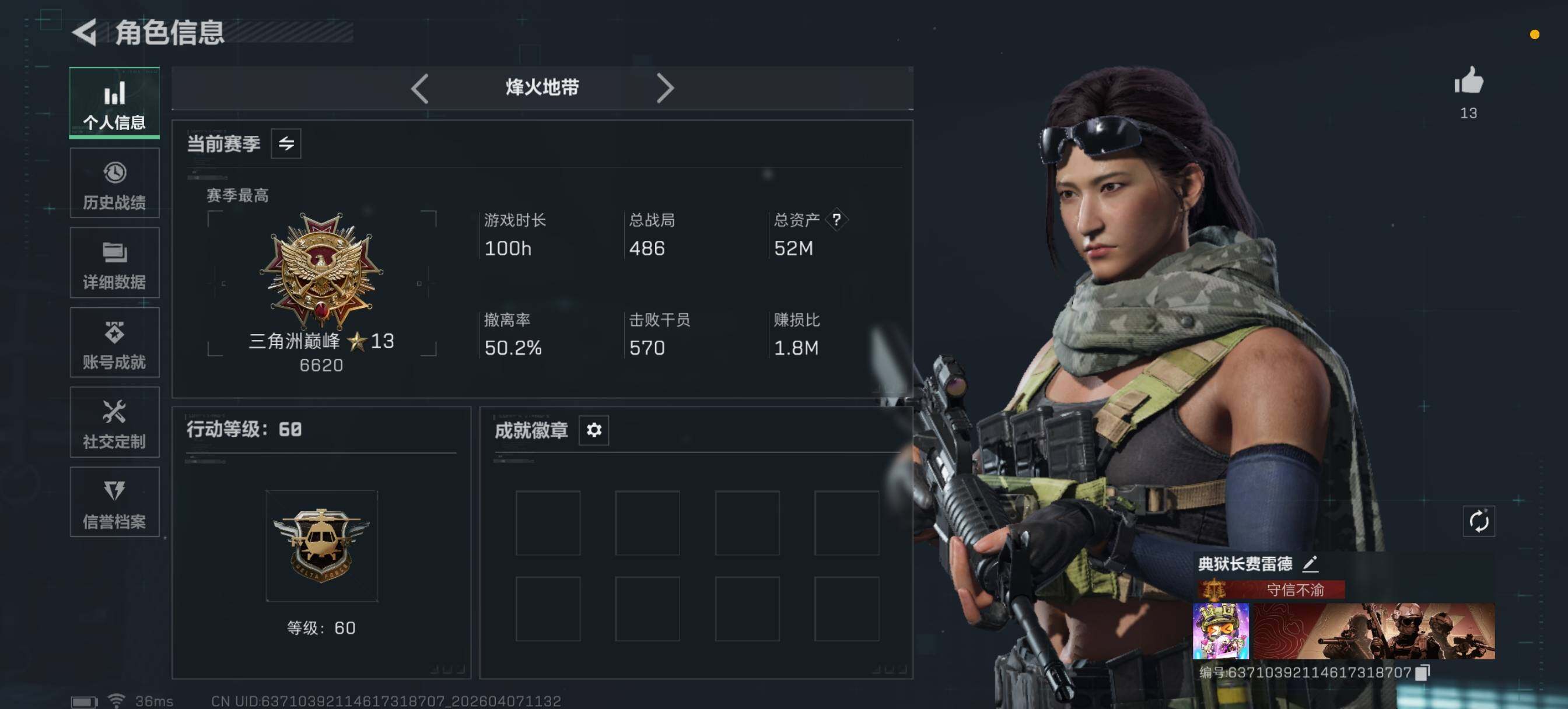 【特价出售/店主推荐】51m总资产-11377k哈夫币-60烽火等级-三角洲巅峰-1战场等级-无军衔