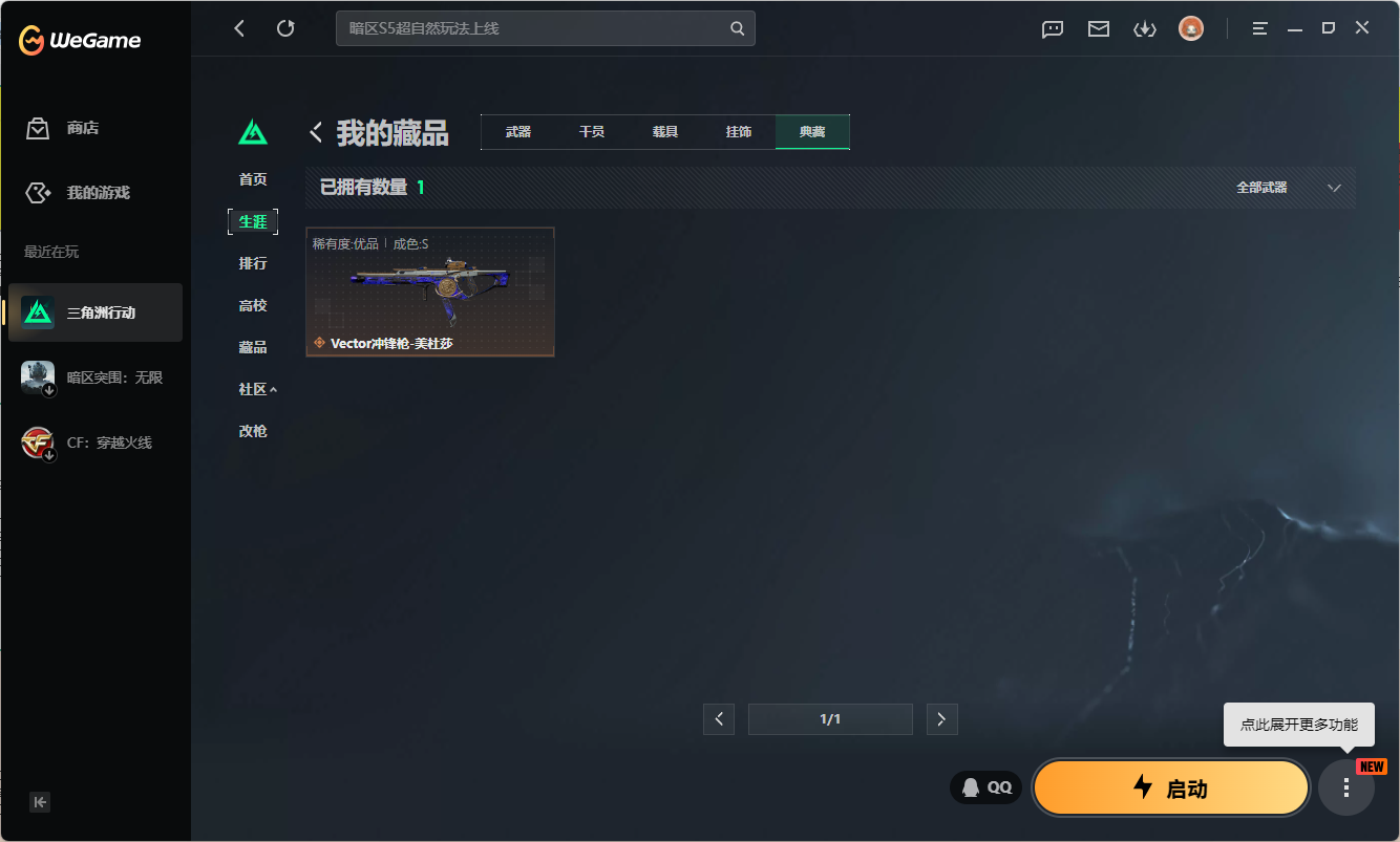 优品S美杜莎 暗星 4级处刑者 S8赛季高级安全箱 总资产119M,哈夫币11,819K,行动等级:60,传说典藏数量:1,近战数量:2