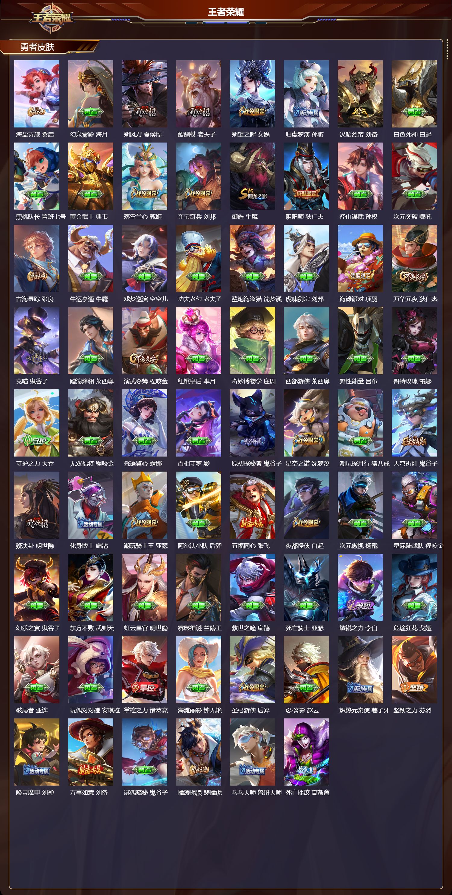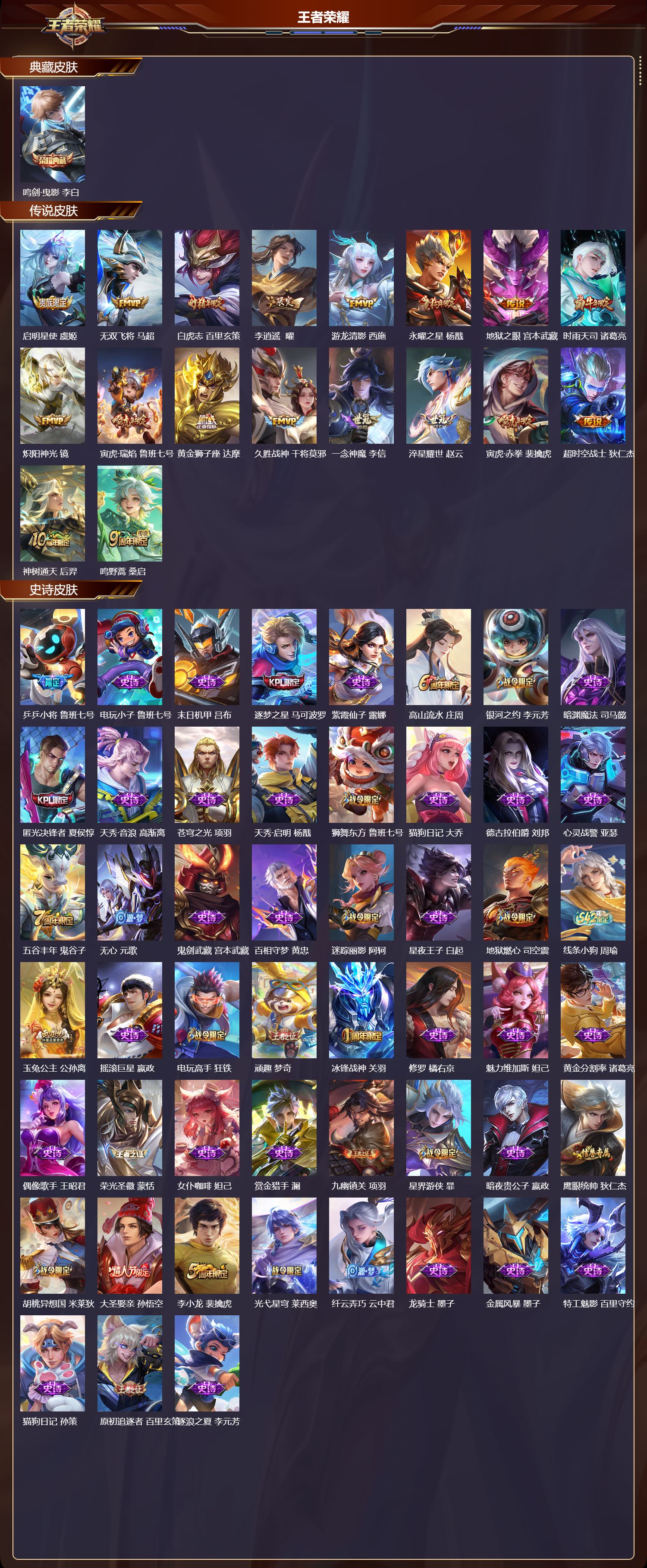 绝世王者/326皮肤/128英雄/1典藏/0珍品无双/0无双/0珍品传说/18传说/102史诗/8稀有英雄