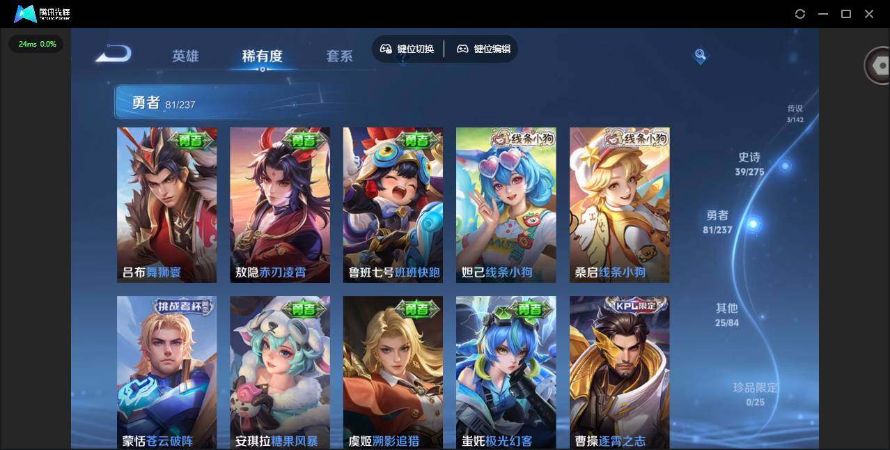 实名: 可修改 贵族等级: V5 英雄数: 116 皮肤数: 148 星传说: