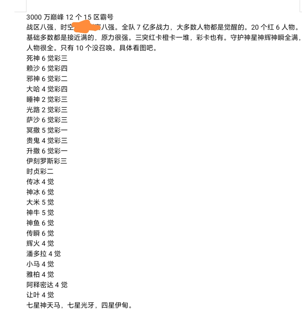 区霸3100万巅峰12个15时空8强有图!银河联赛全胜黄金2六觉死神邪神赖沙7亿战力20个红6原力强