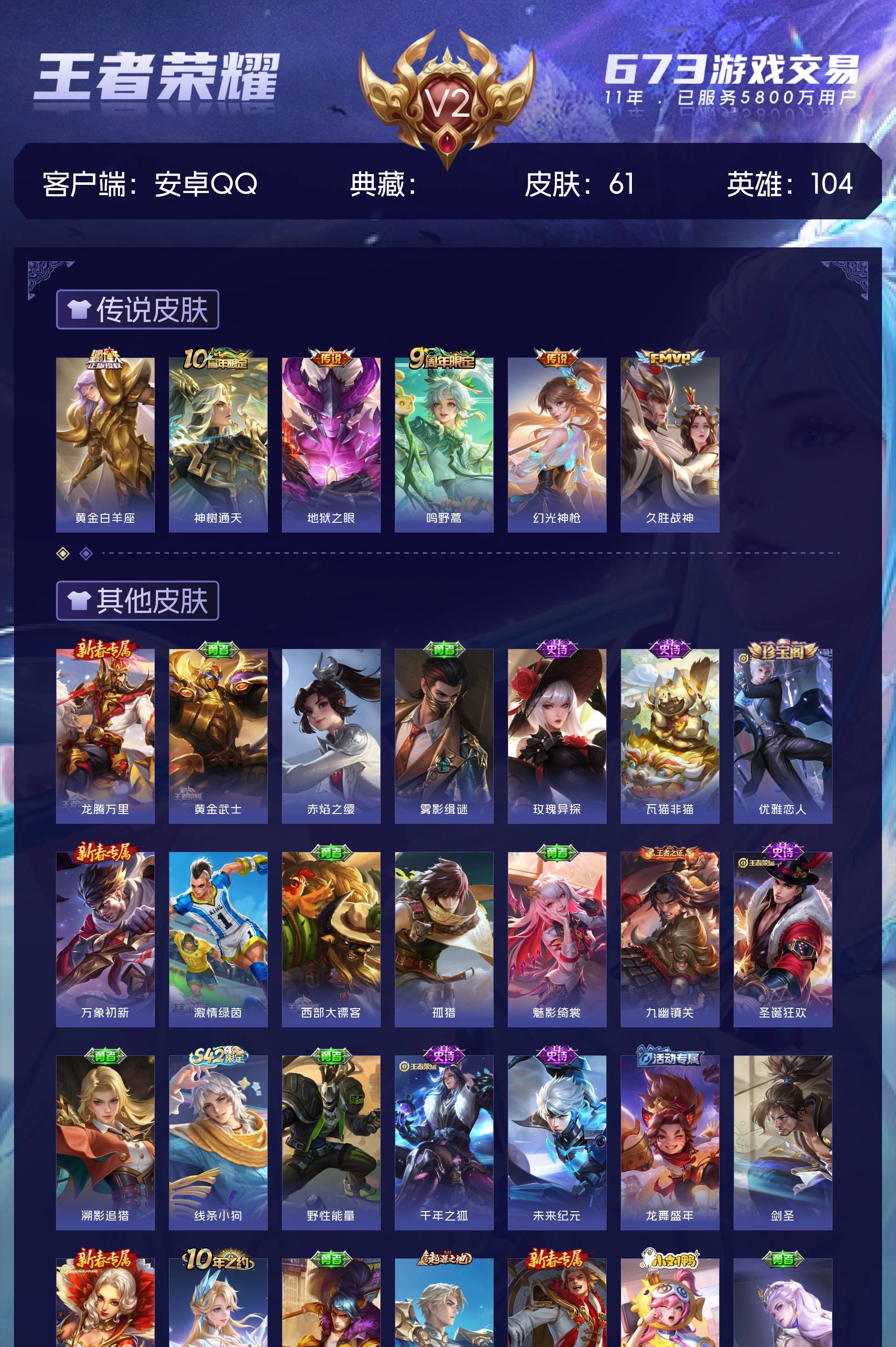 V2 皮肤61 英雄104 至尊星耀 星传说1 传说6