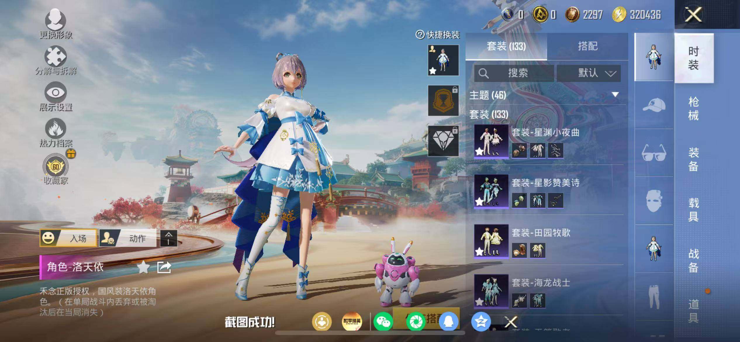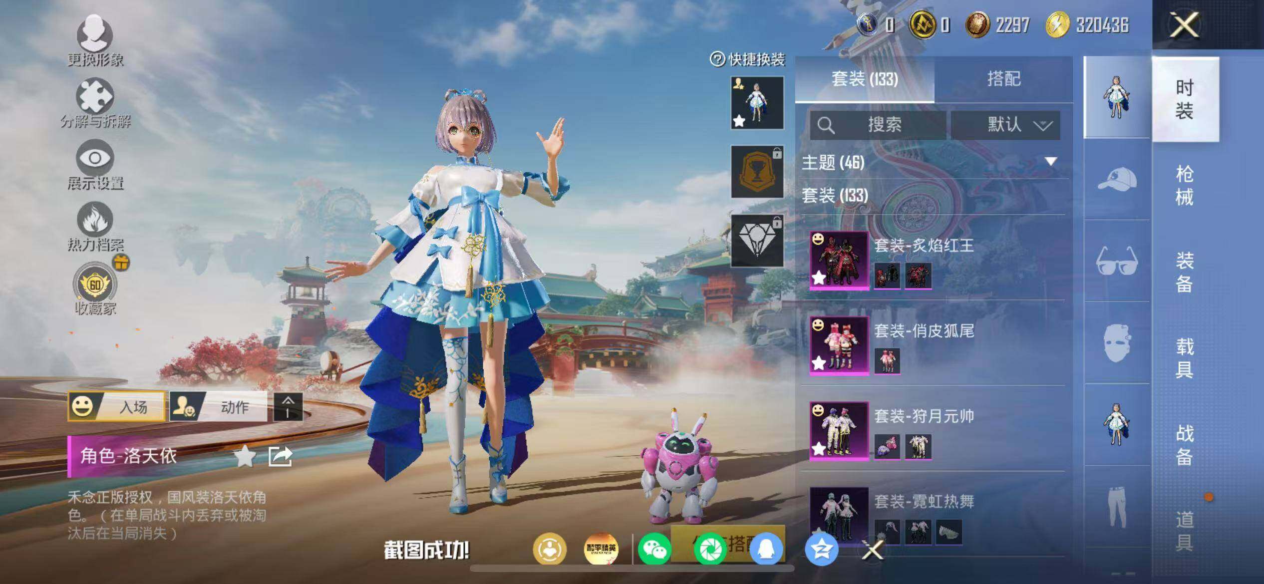 【粉色套装】:粉装-宝贝奶油派,粉装-狩月元帅,粉装-俏皮狐尾,粉装-冰霜白皇,粉装-炙焰红王,粉装-暗夜玫瑰,角色-洛天依