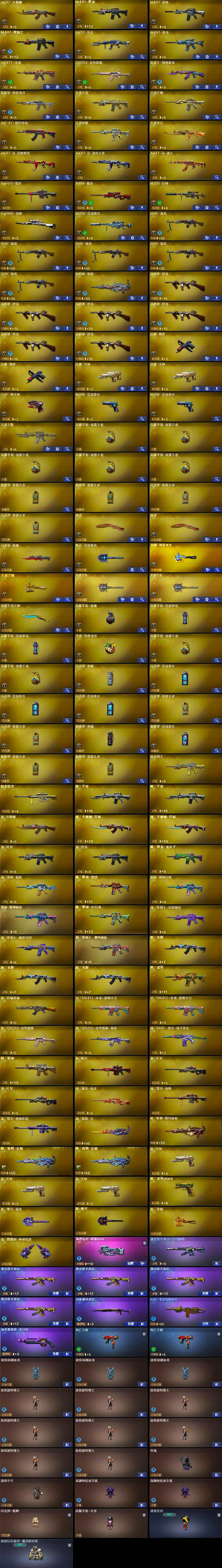 【热门武器】:QBZ03-金色蔷薇,HK417-朱雀,M4A1-青龙,M200-幻神,M200-竞技荣光,死亡之眼*2,Kar98K-星神,M4A1-黑骑士,汤姆逊-烈龙*6,RPK-盘龙*5,加特林-炼狱,降世魔童,COP-堕天神,沙鹰-修罗*2
