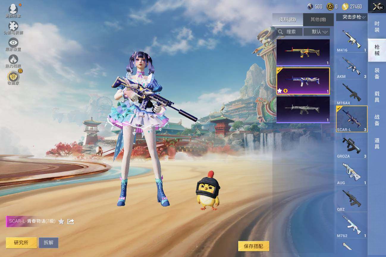 【粉色枪皮等级】:SCAR-L-青春物语(七级),Kar98K-巳巳如意(五级),DP-28-豹影疾电(五级)