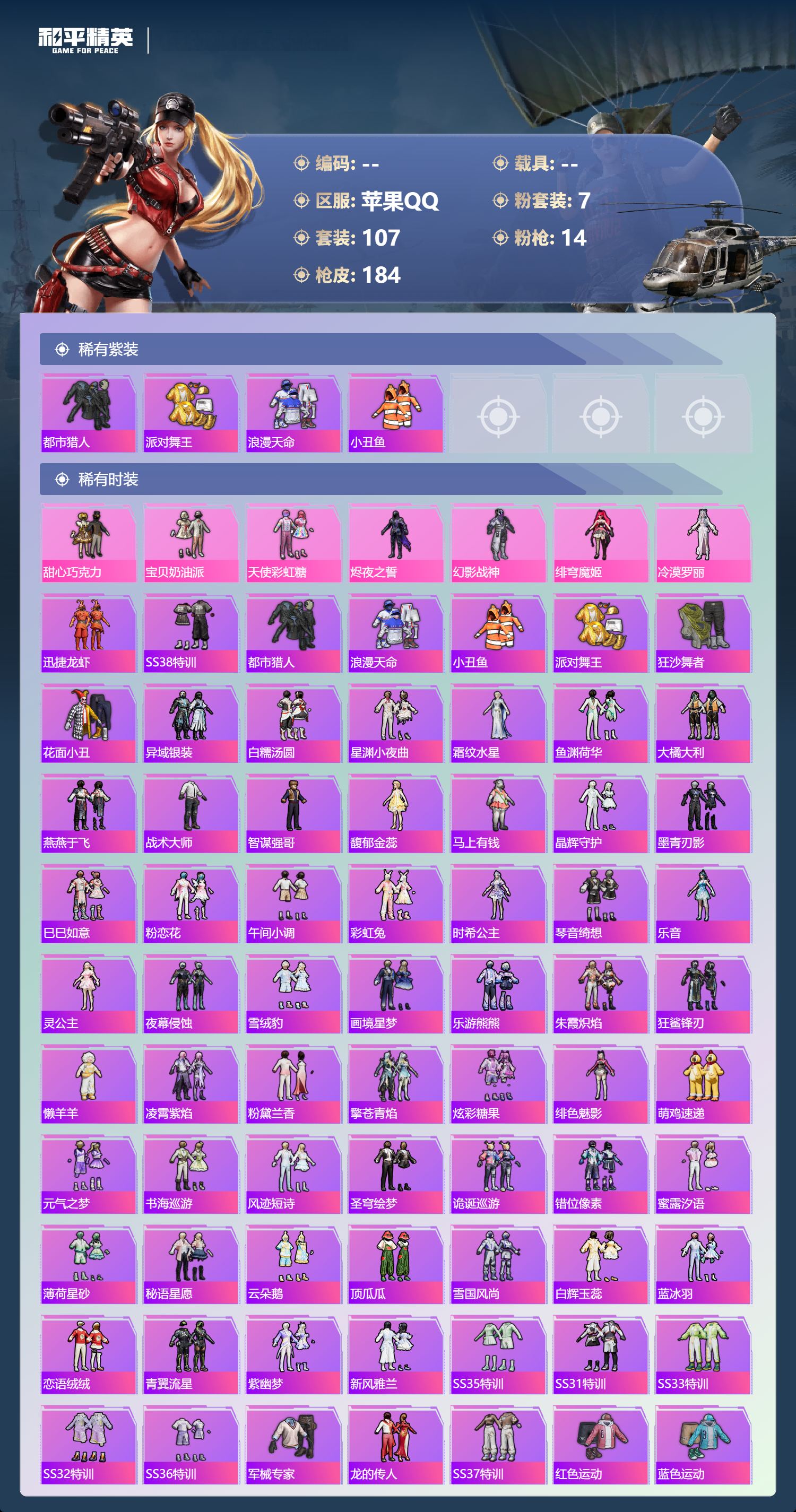 hs68444 苹果手Q-5王牌印记-7粉装-14特效枪-52914热力值-107套装-184枪皮-3卓越印记-2传奇印记