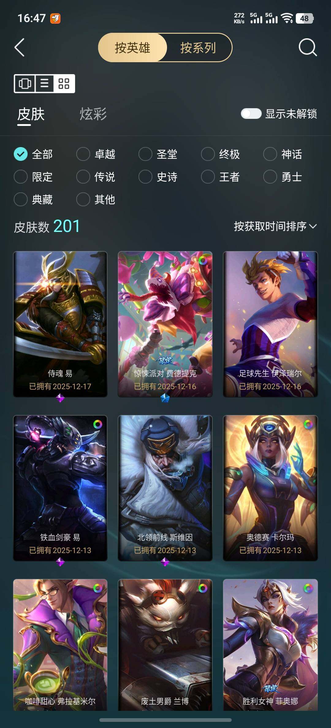 【店主推荐捡漏号!可直接换绑】未定级段位-172英雄-201皮肤-44炫彩-0终极-10神话-25限定-19传说-52史诗