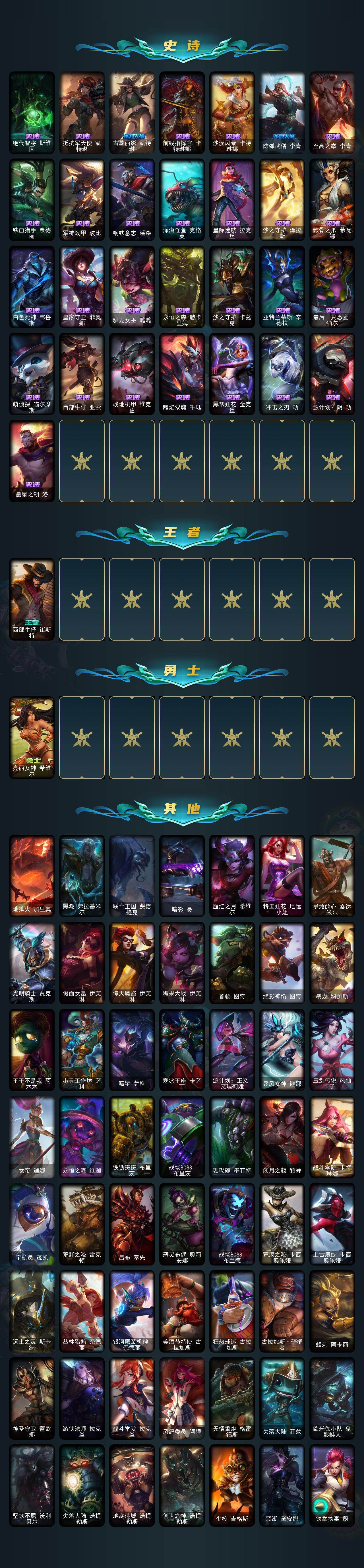 未定级段位-105英雄-160皮肤-24炫彩-0终极-4神话-34限定-18传说-43史诗