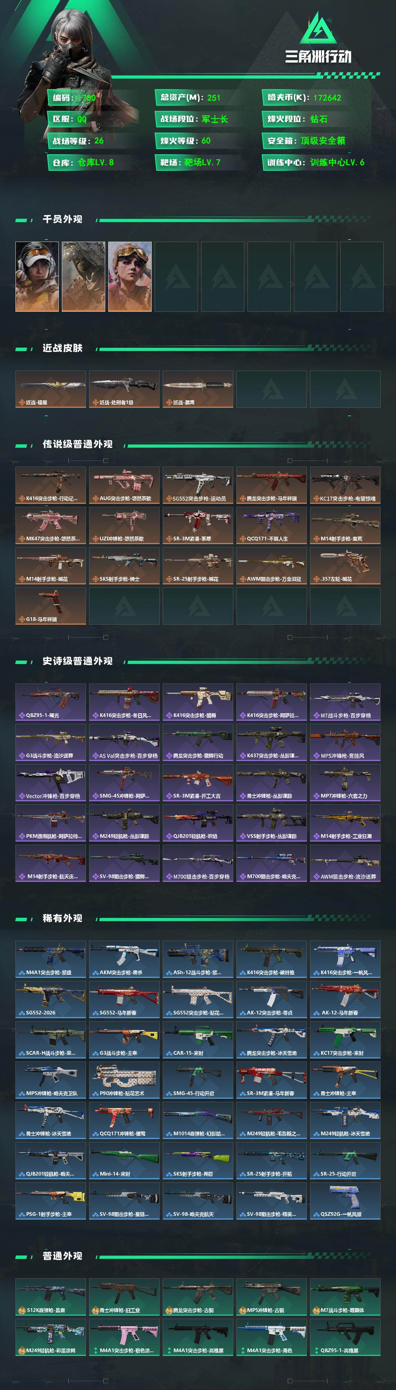 251m总资产-172642k哈夫币-60烽火等级-钻石-26战场等级-军士长