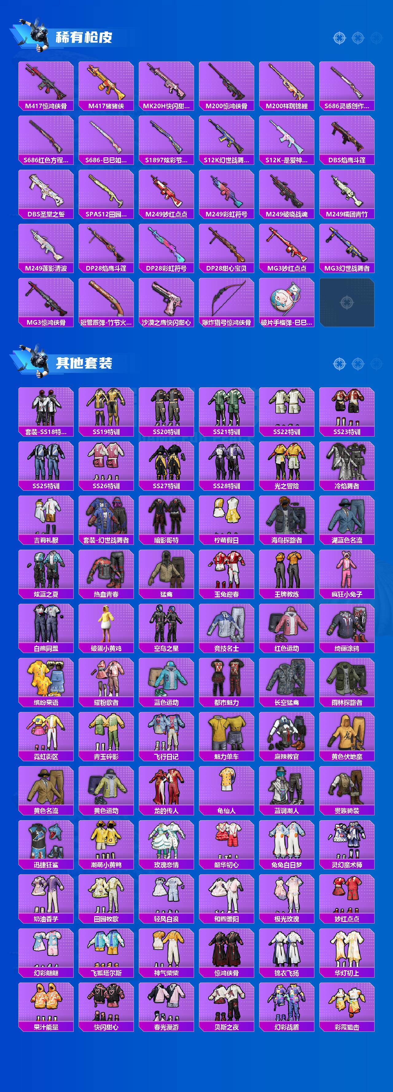 【粉色枪皮】:AKM-绿萝繁花,SCAR-L-锦绣绵绵,M416-电玩时刻,ACE32-