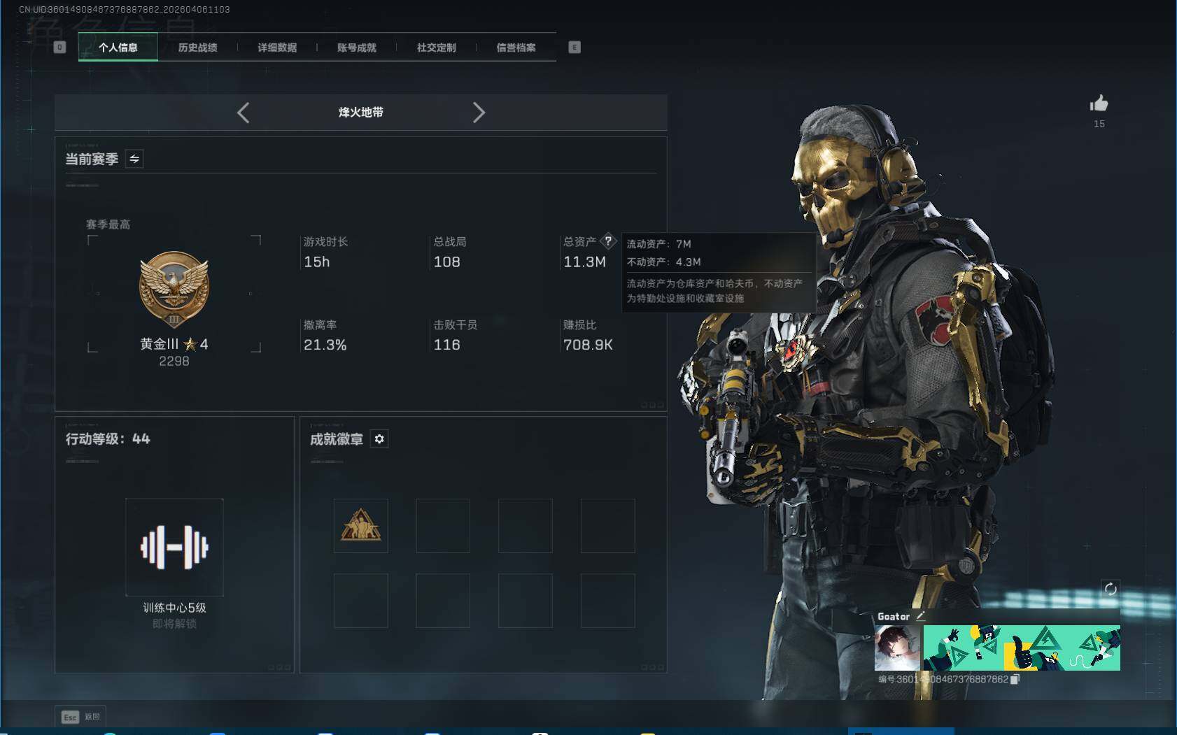 【SJZF7434】总资产(M):11M/哈夫币(K):1618K/哈夫币(K):1618K/传说枪皮数:11/全面战场等级:50_段位:列兵/烽火地带等级:44_段位:黄金/红狼-蚀金玫瑰/骇爪-维什戴尔/近战-黑鹰/M4A1突击步枪-蚀金玫瑰/SG552突击步枪-点翠/SCAR-H战斗步枪-启航/KC17突击步枪-点翠/勇士冲锋枪-能天使-午夜邮差/M14射手步枪-缄花/SR-25射手步枪-水墨云图/SR-25射手步枪-缄花/PSG-1射手步枪-点翠/R93狙击步枪-维什戴尔/.357左轮-