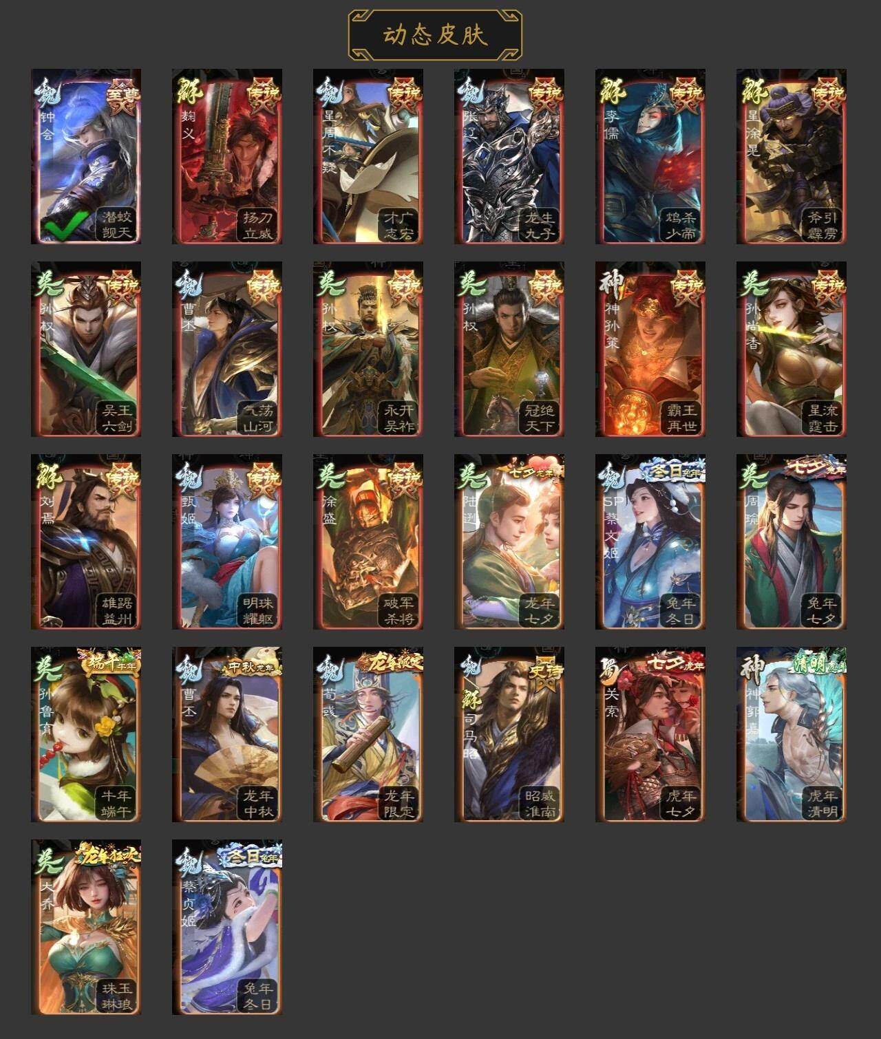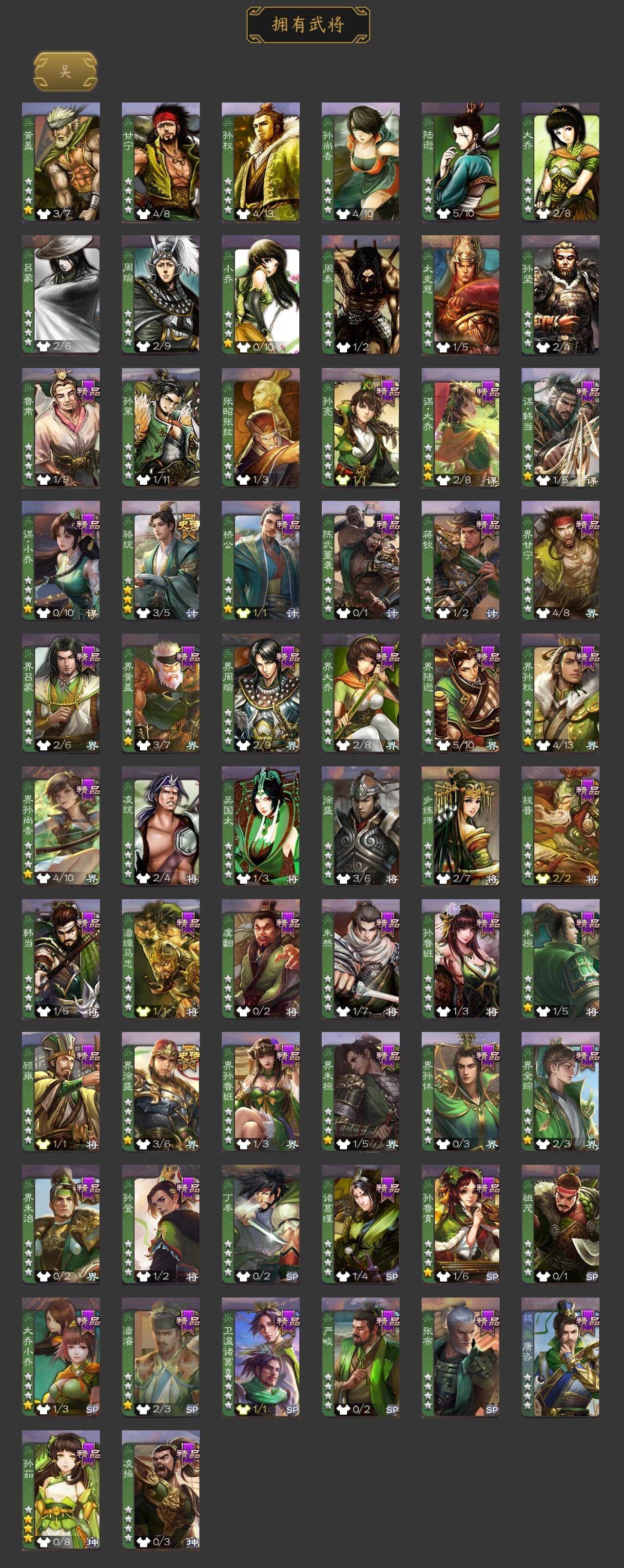 神赵云,神陆逊,神郭嘉,神孙策,曹髦,星周不疑,王元姬,界钟会,嵇康,郝昭,曹婴,曹纯,戏志才,刘晔,程昱,谋赵云,诸葛瞻,沙摩柯,谯周,花鬘,骆统,界徐盛,十常侍,麹义,南华老